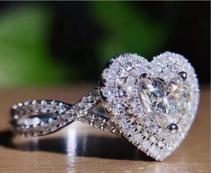 Women Heart Ring With Sparkling Simulated Diamond Inlaid Copper Elegant Gift Jewelry For Her Anniversary Style