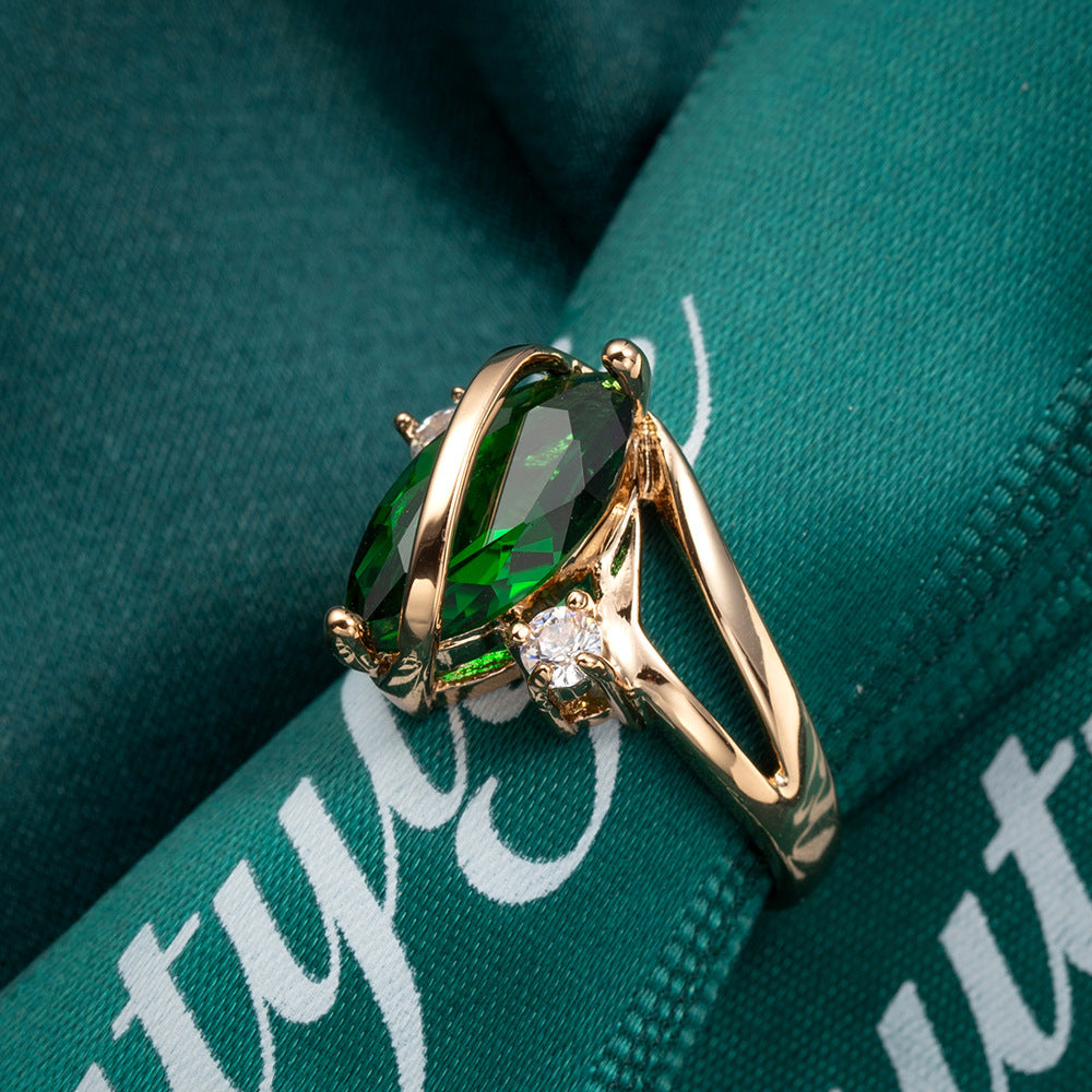 Copper Ring With Horse Eye Zircon Exquisite Design Sparkling Statement Jewelry For Girls Elegant Fashion Rings