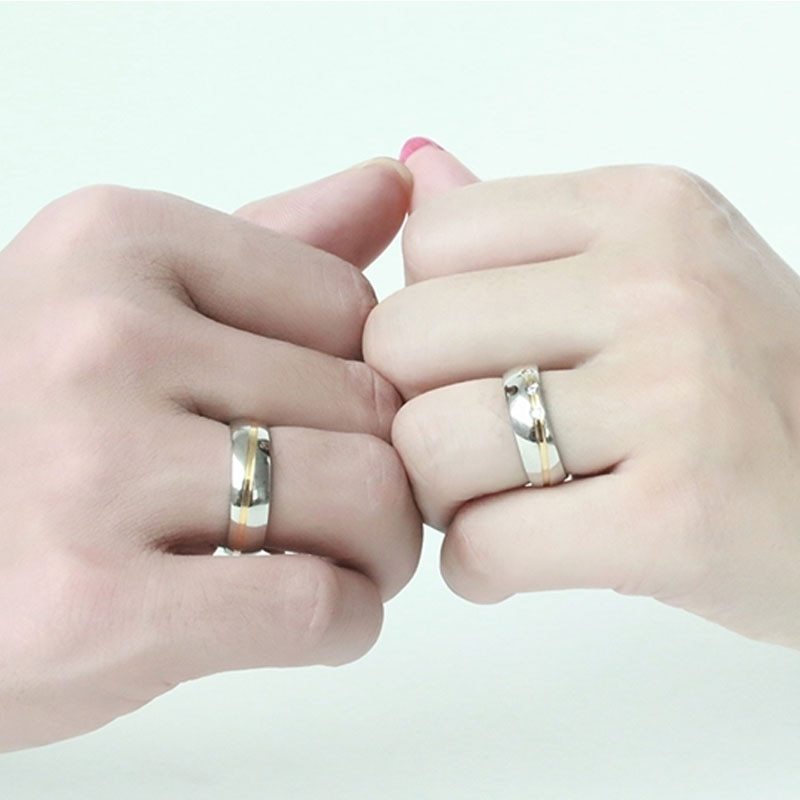 Couple Wedding Rings Stainless Steel Band With CZ Cubic Zirconia 6mm Lovers Promise Anniversary Gift IdeaToday