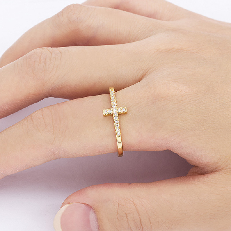 Mens And Womens Diamond Inlaid Zircon Cross Ring Copper Electroplated Adjustable Opening Jewelry Gift For Every Style