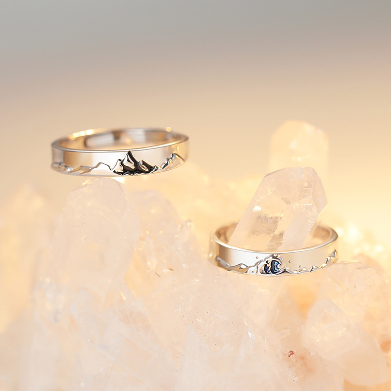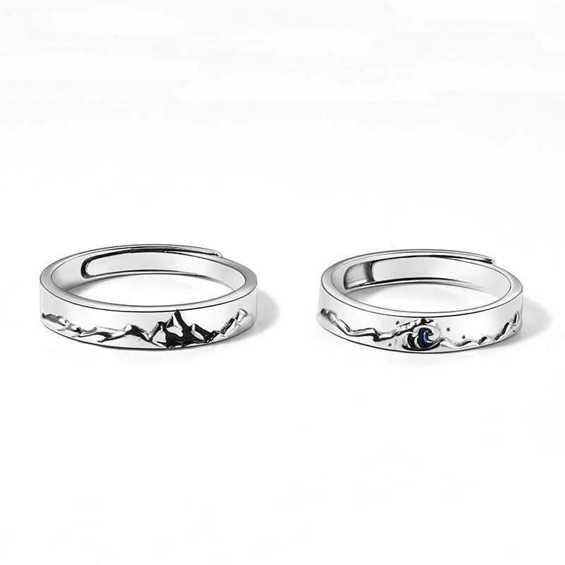 Mens And Womens Silver Couple Ring Geometric Design Matching Jewelry For Him And Her Fashion Jewelry For Pairs