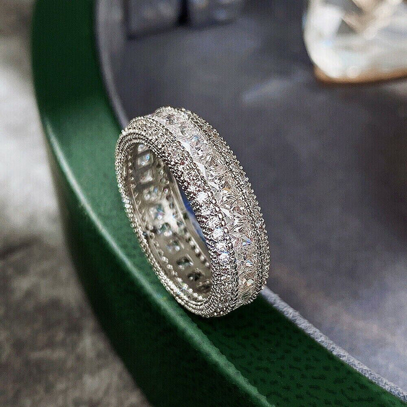 Unisex Hip Hop Ring With Micro Inlaid Zircon Geometric Copper White Gold Tone Jewelry Statement Durable Finish