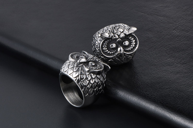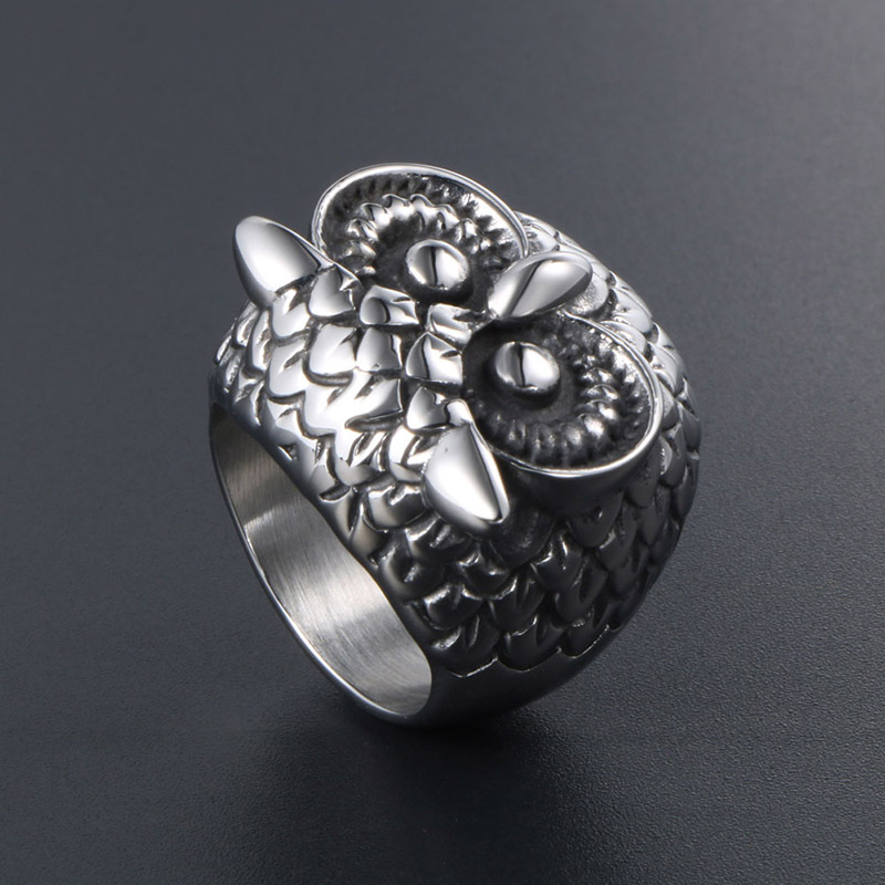 Mens Unisex Owl Ring Titanium Steel Polished Ornament Punk Fashion Retro Animal Image Rings Hand Ornament Punk