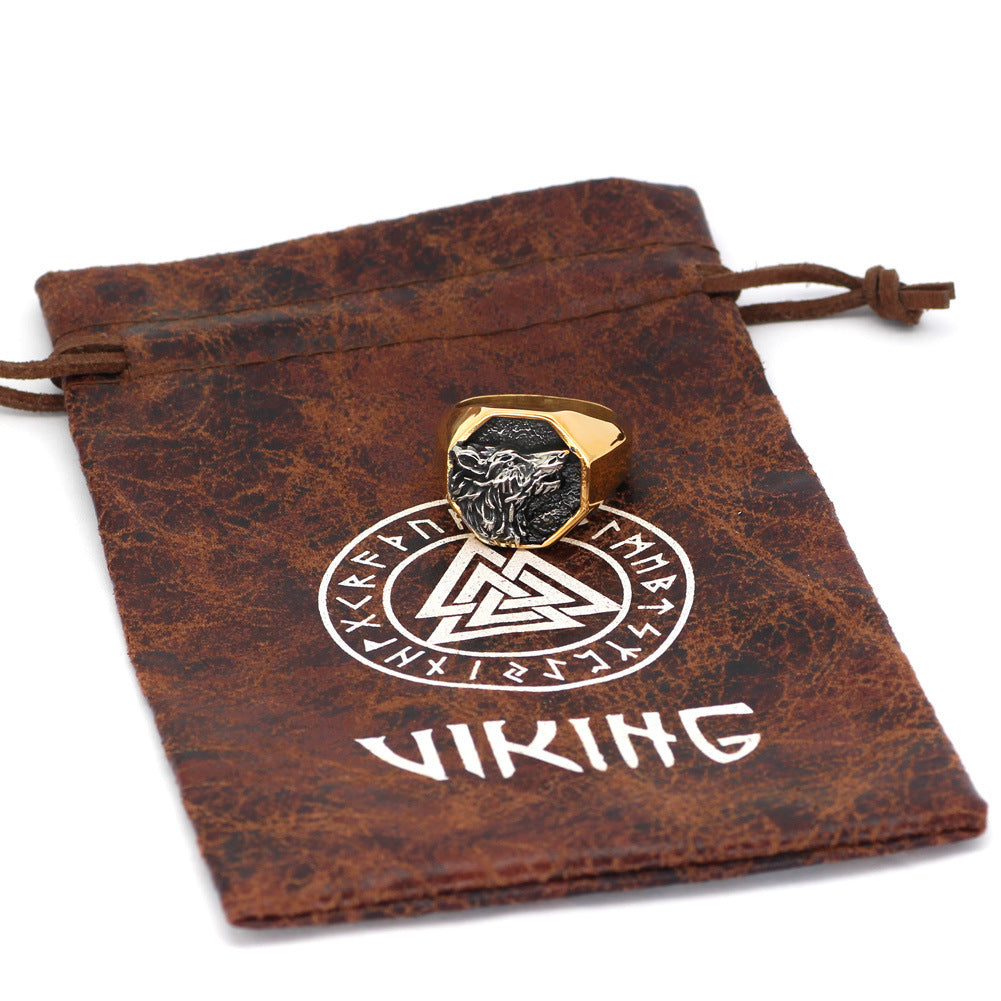 Mens Titanium Steel Animal Zodiac Ring Vintage Design Statement Ring Gold Color Band Jewelry Gift Size 9 10 11 12 13