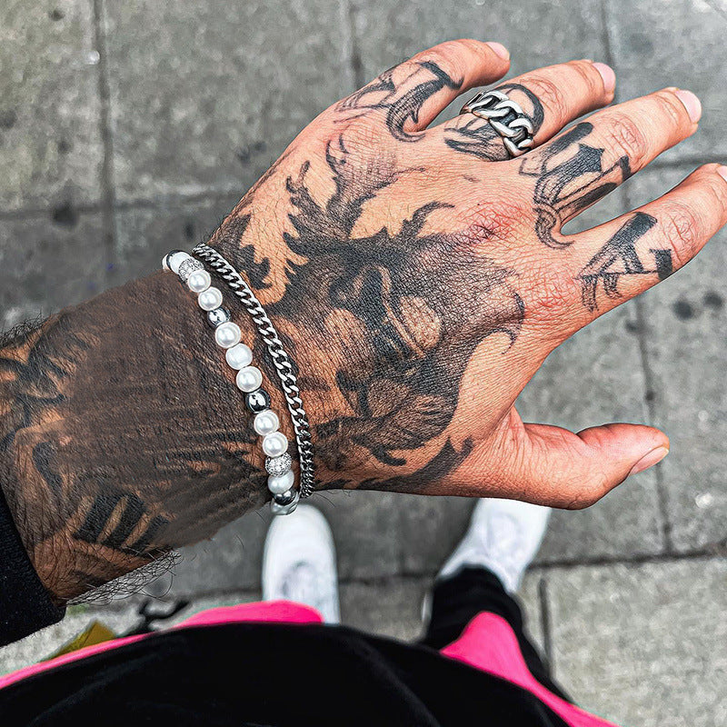 Unisex Geometric Bracelet Set Artificial Pearl Chain Bracelets With Zircon Accents Matching Couple Jewelry Gift