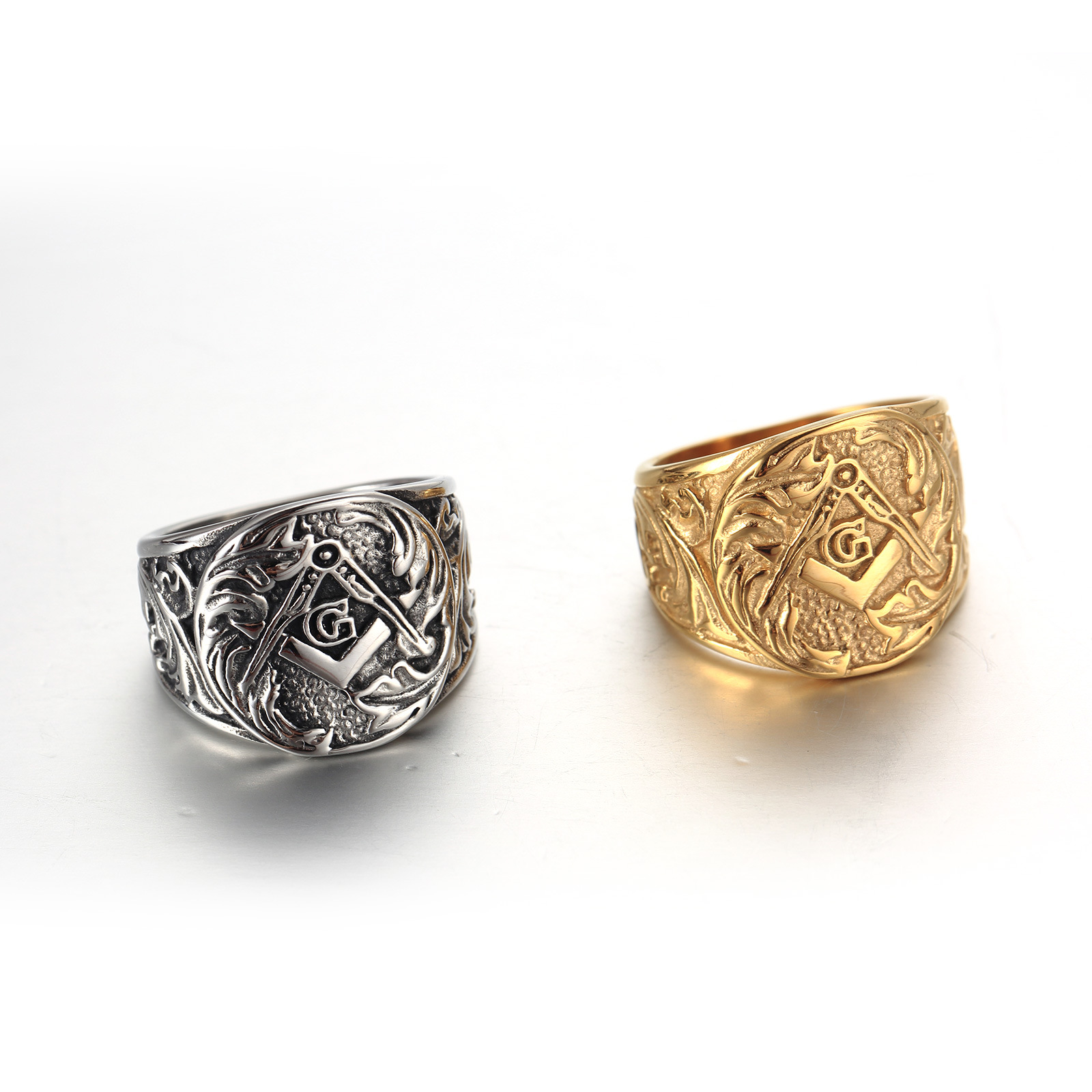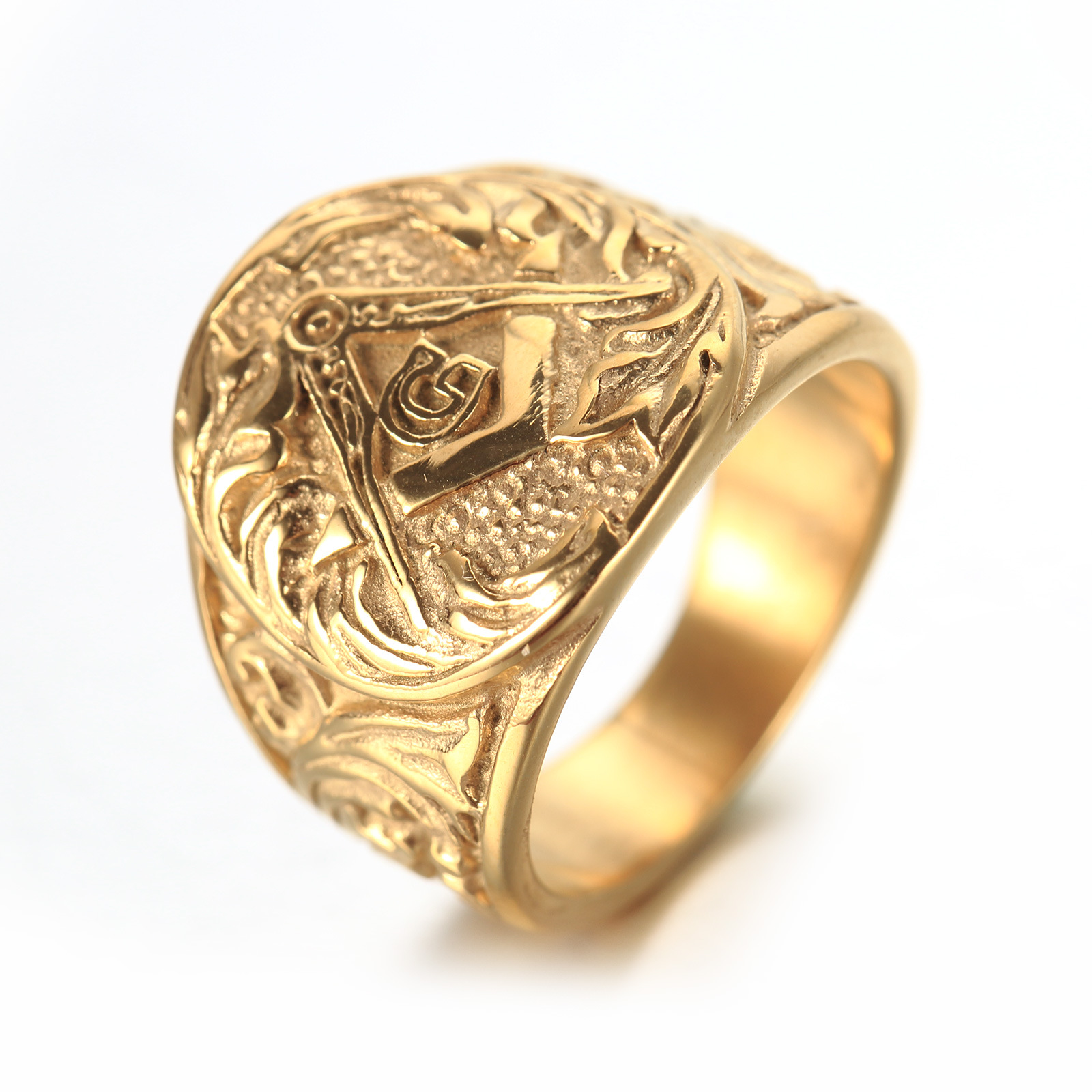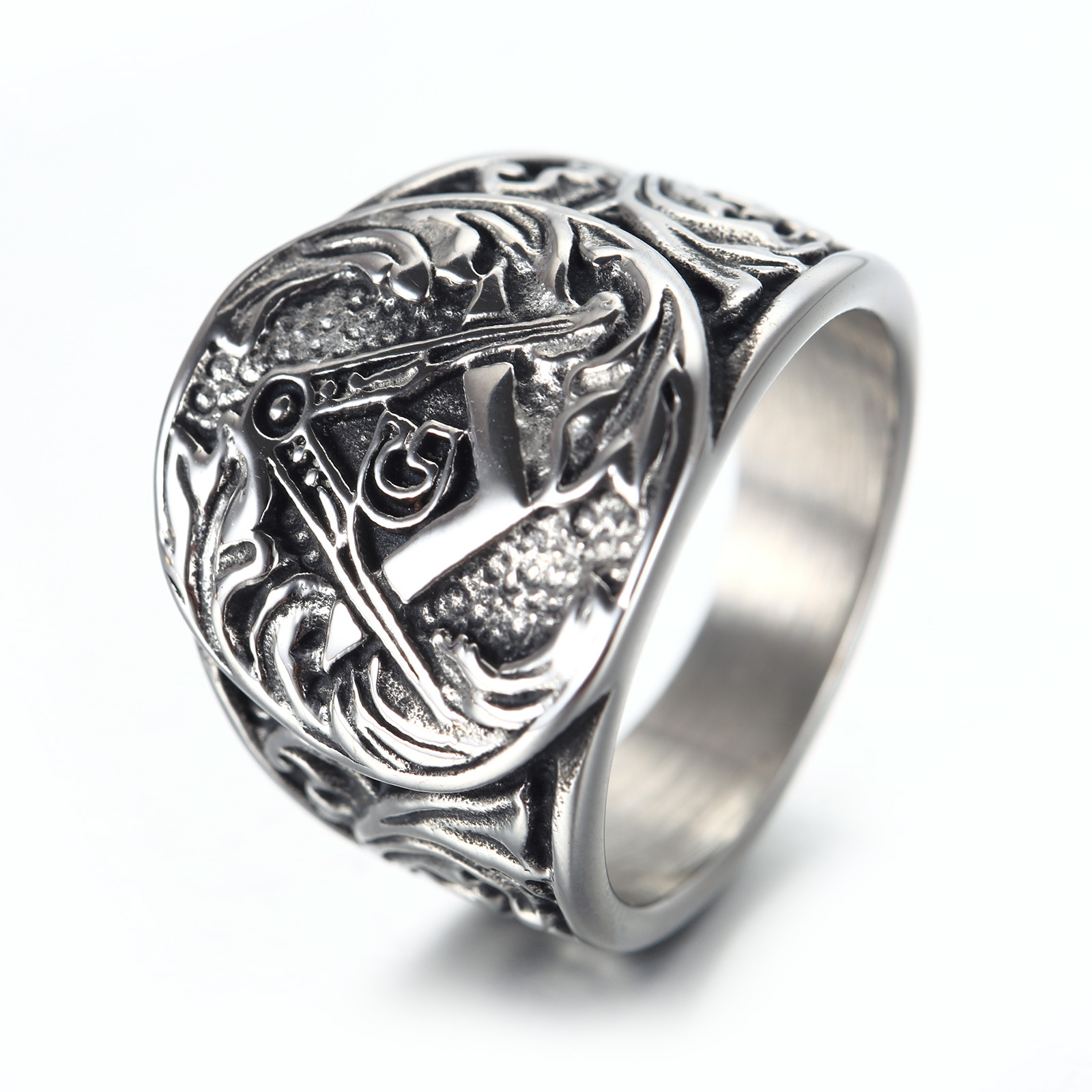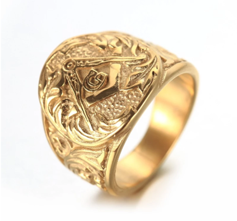 Mens Ring Vintage Masonic Ring Titanium Steel Geometric Design Ring European American Electroplated Finish Ring Ring