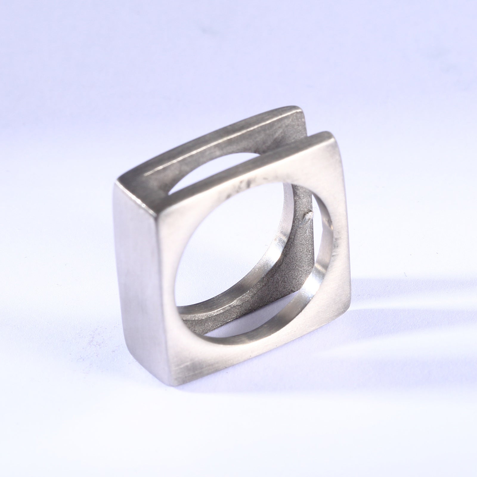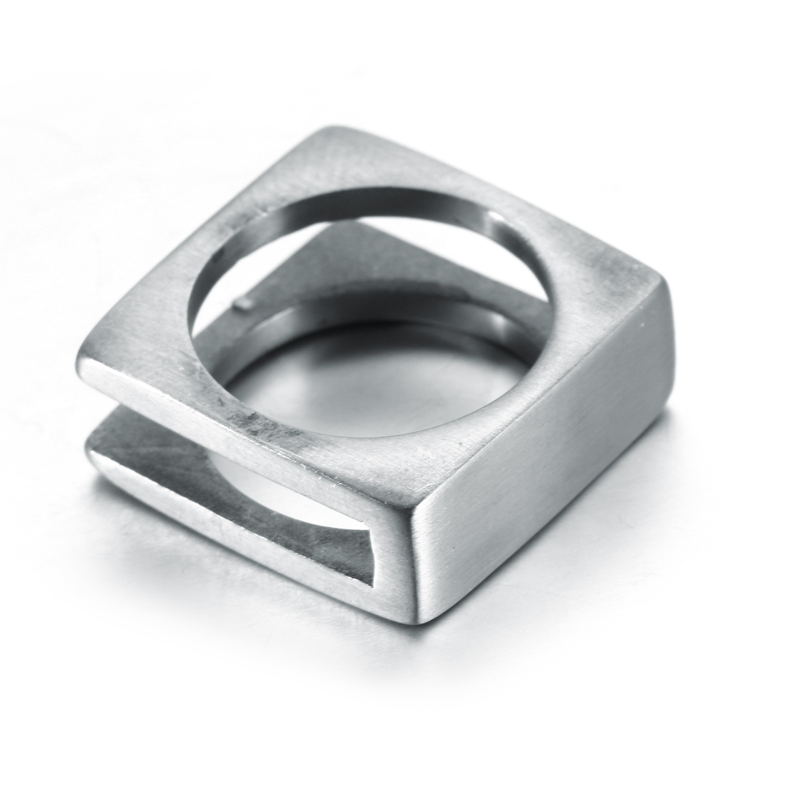 Mens Square Hollow Stainless Steel Ring Geometric Design Silver Band Jewelry Gift For Festivals European Style