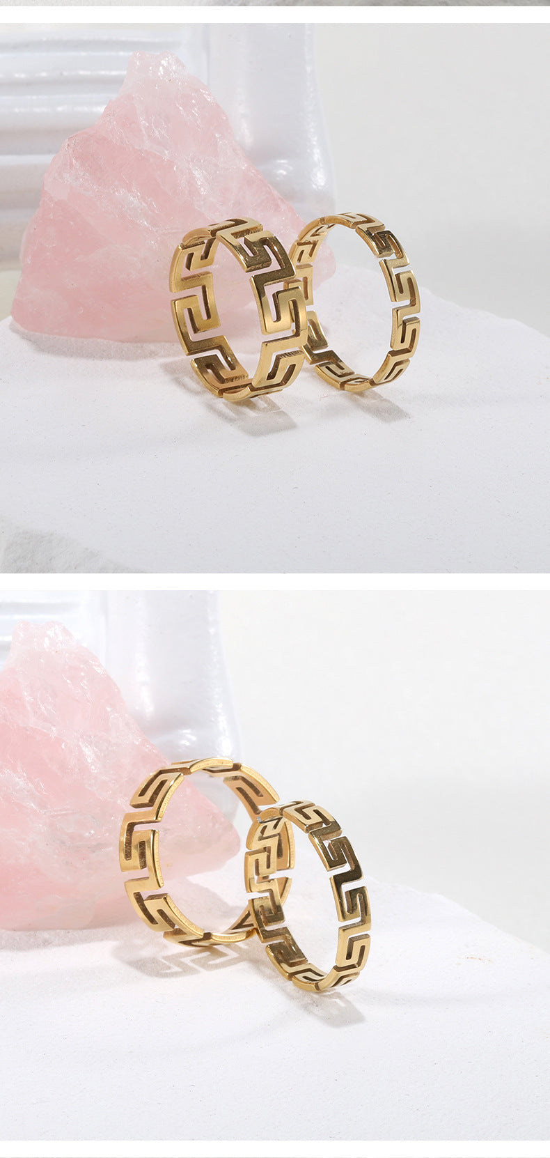 Mens Titanium Steel Ring Great Wall Pattern Auspicious Cloud Design Fashion Jewelry Electroplated For Men Chic