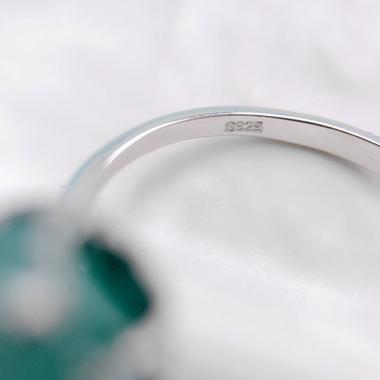 Womens 925 Sterling Silver Ring With Blue Crystal Mermaid Tail Open Adjustable Wedding Band Sparkle Finish Set