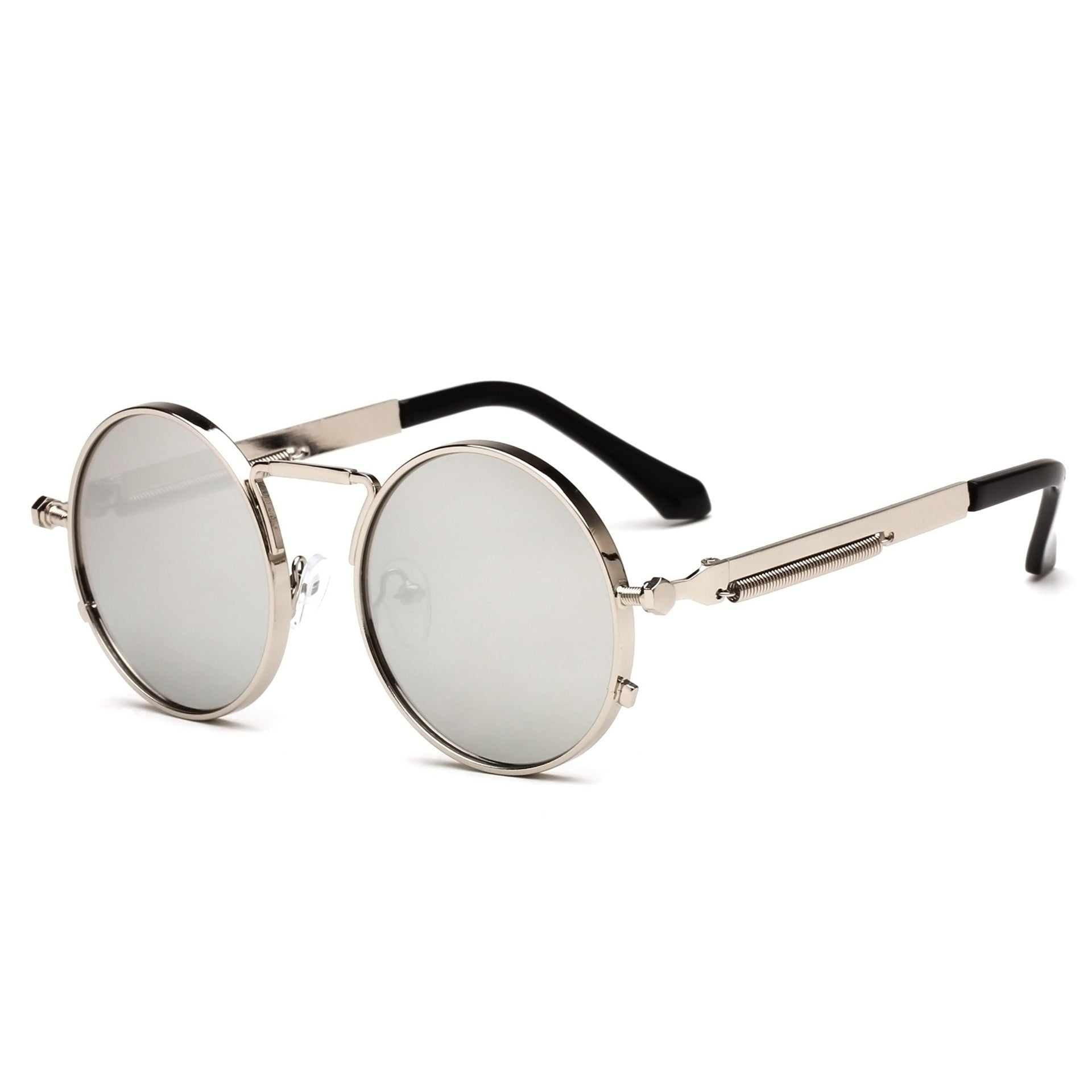 Round Sunglasses With Metal Frame Spring Design And AC Lenses For Men And Women Gray Green Black Brown Lens Choices