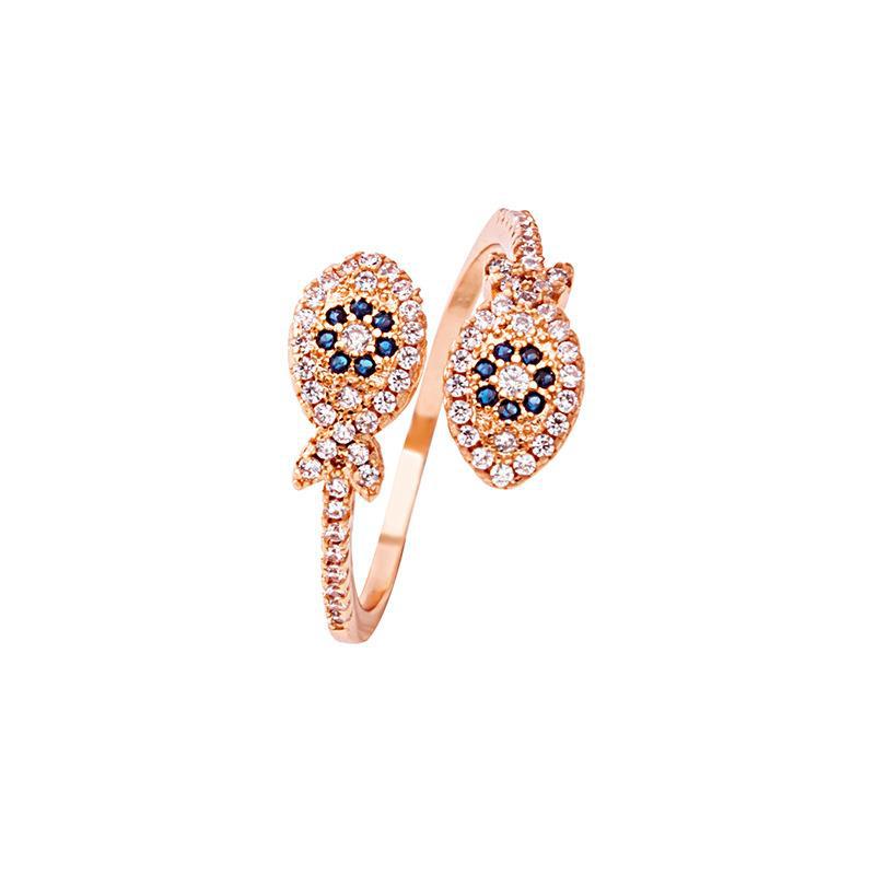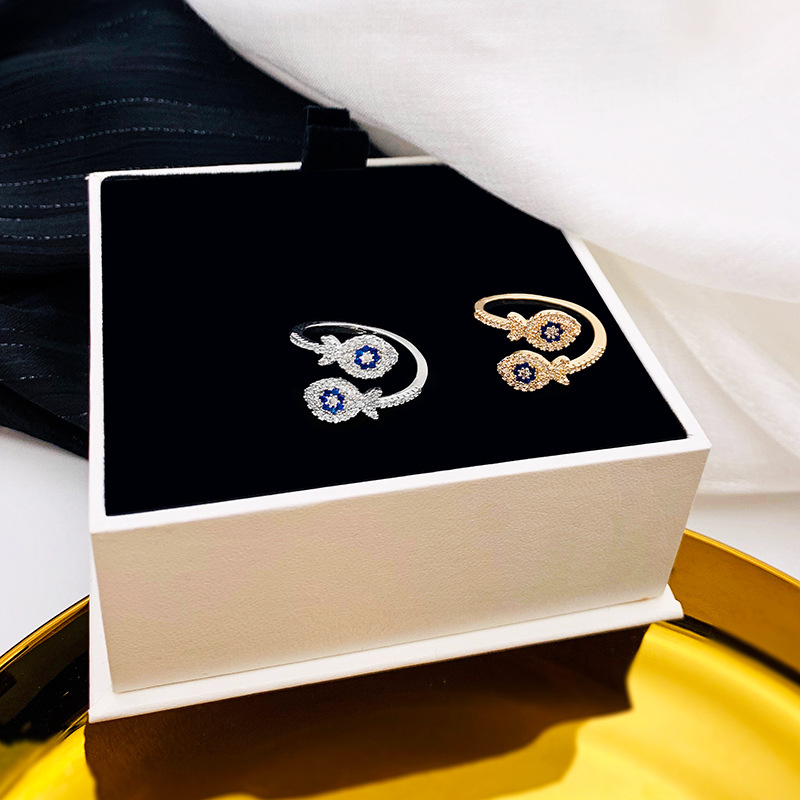 Womens Adjustable Fish Ring Micro Diamond Copper Jewelry