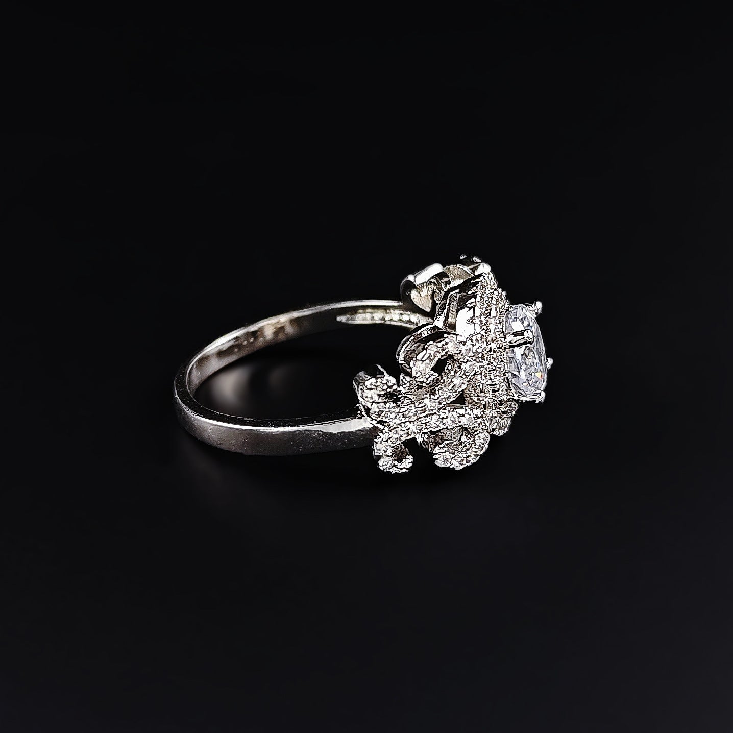 Womens Elegant Engagement Ring Micro Inlaid Diamond Luxury Fashion Zircon Ring Geometric Copper Ring For Women