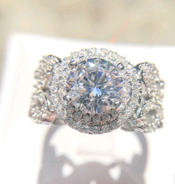 Couples Engagement Wedding Ring Set Micro Inlaid Zircon Diamond Luxury Brass Electric White Steel European Design