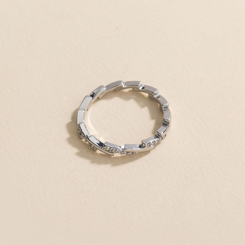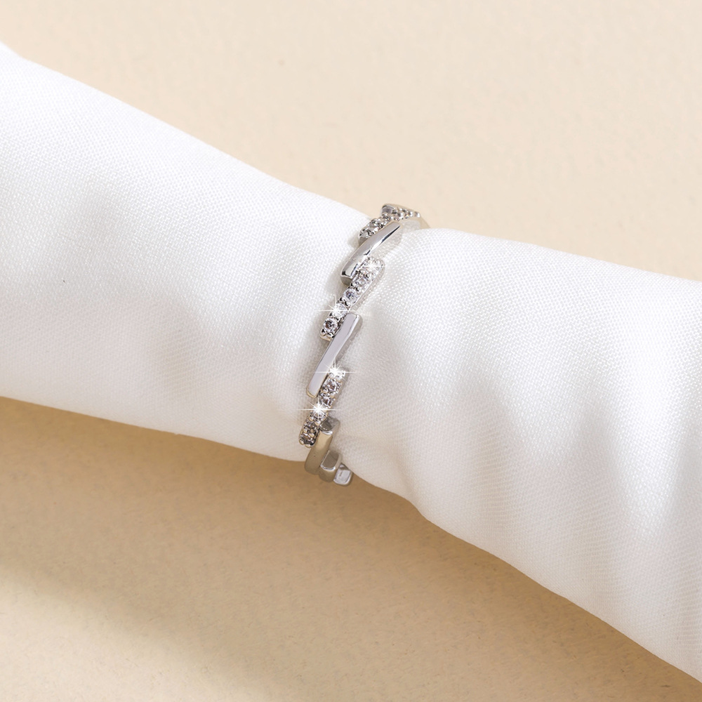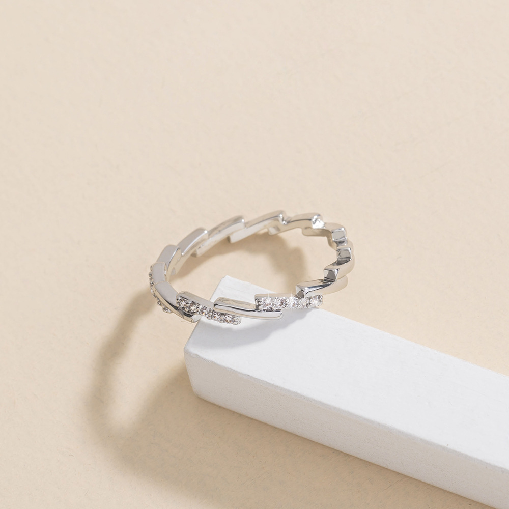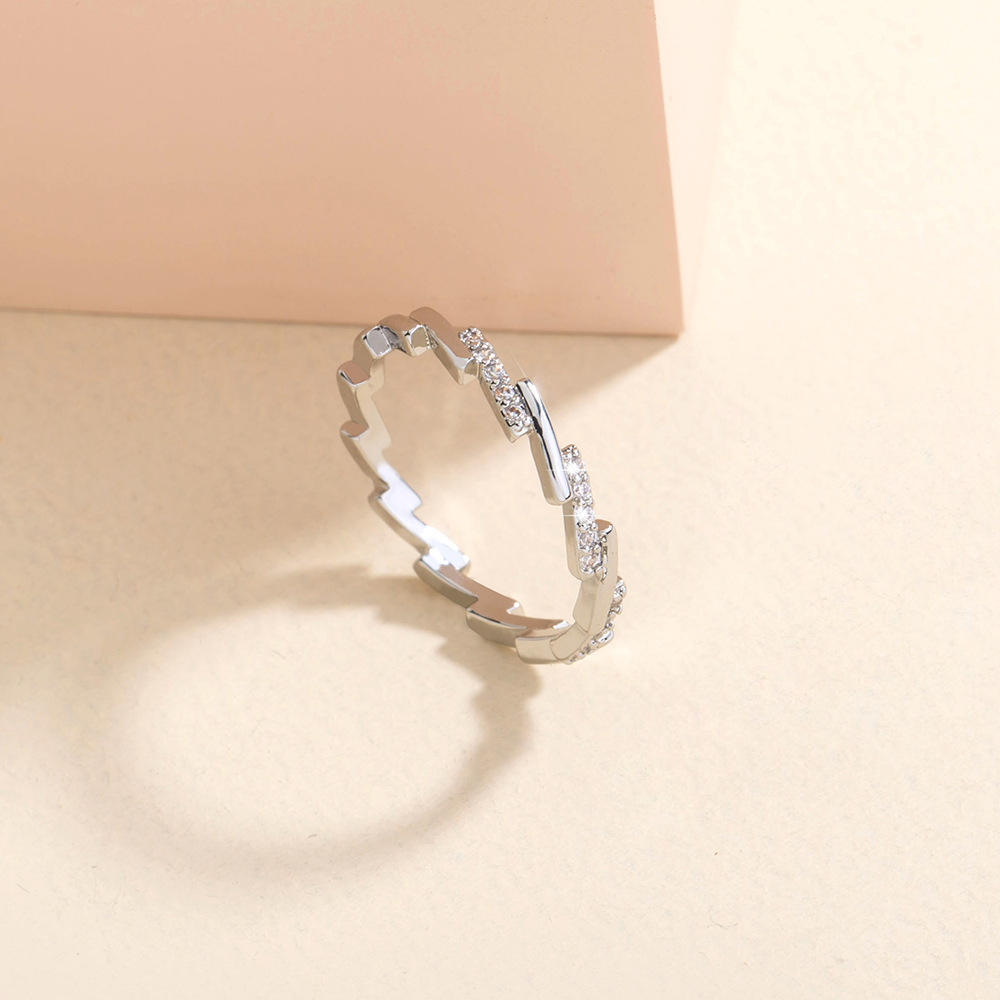 Unisex Copper Ring Zircon Star Geometric Design Micro Inlaid Interlaced Wave Ring Fashion Jewelry Durable Everyday Wear