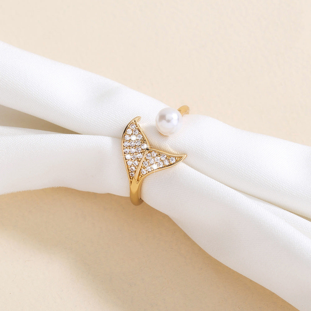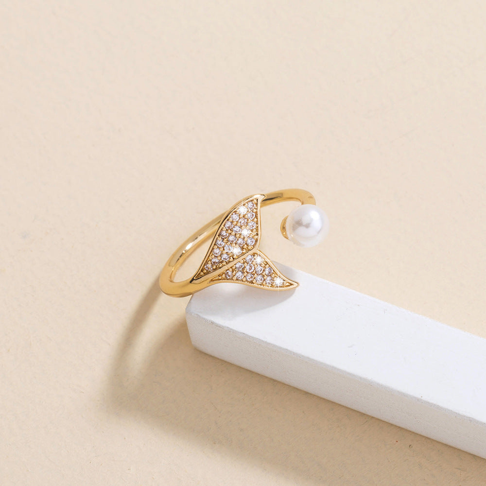 Womens Micro Inlaid Mermaid Tail Ring Copper Electroplated Animal Design Fashion Jewelry Gift For Her Hand Made