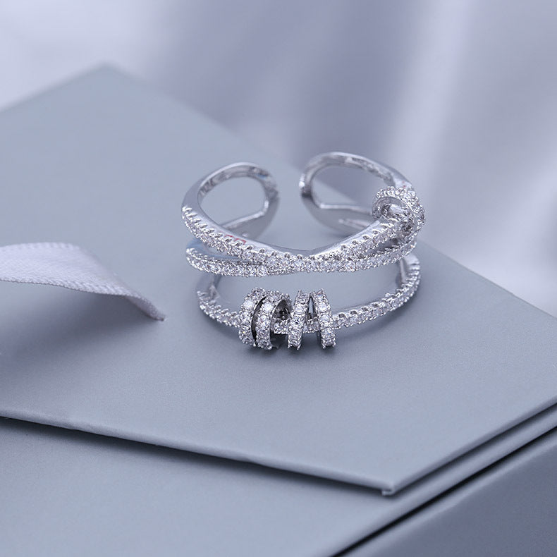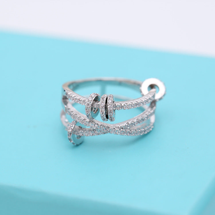 Womens Ring Copper Zircon Inlaid Circle Ring Cross Ring Multi Layer Ring Geometry Ring Fashion Jewelry Gift 17