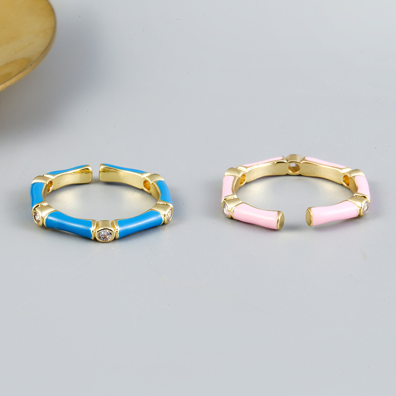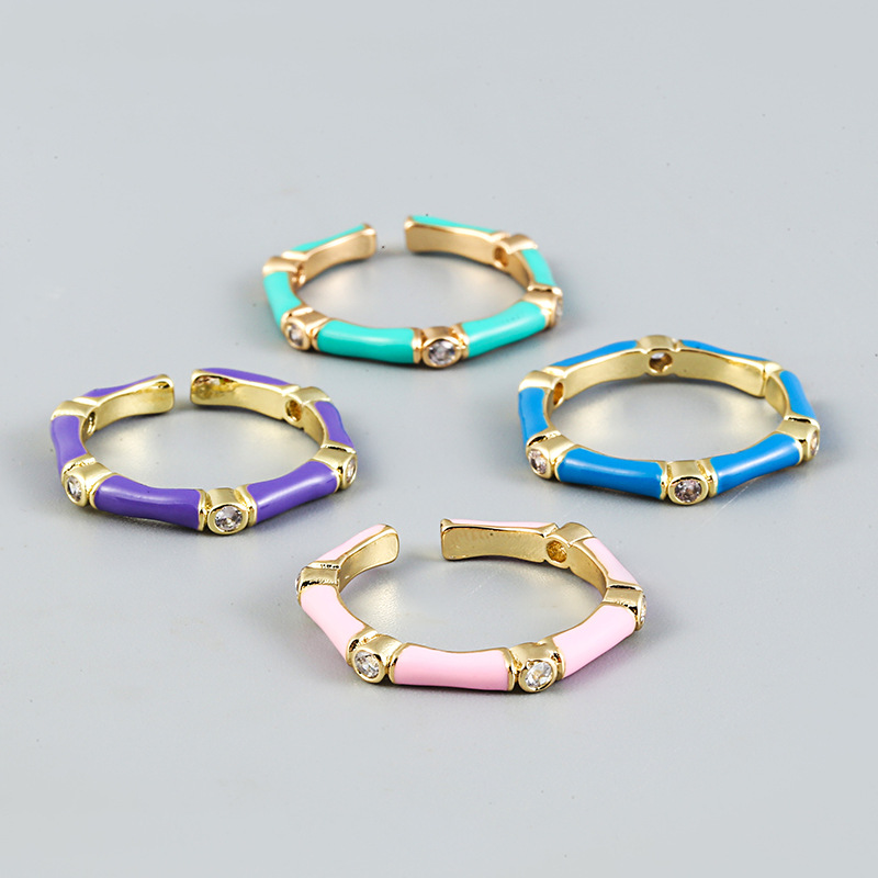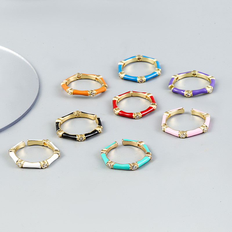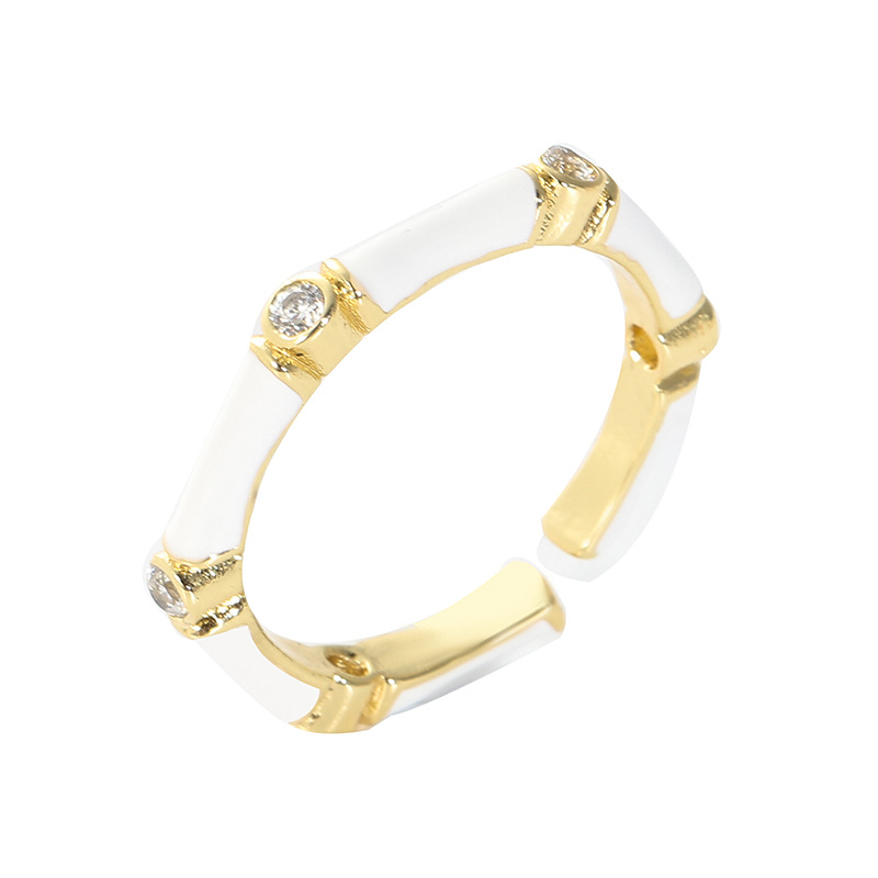 Womens Ring Zircon Set Drip Oil Copper Bamboo Design Adjustable Fashion Accessory Durable Statement Piece Size