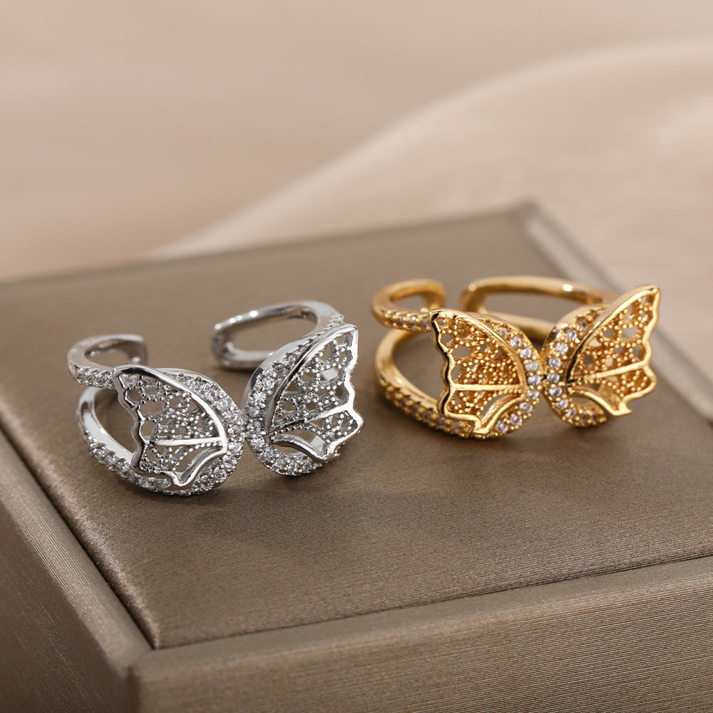 Womens Butterfly Zircon Copper Adjustable Ring Dainty Elegant Fashion Jewelry For Everyday Wear And Occasions