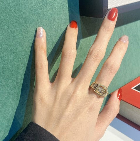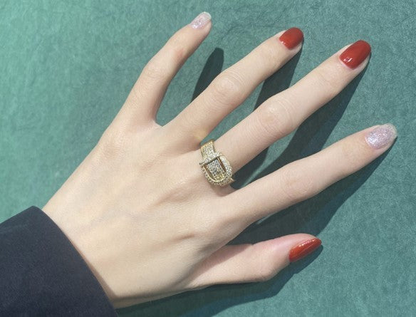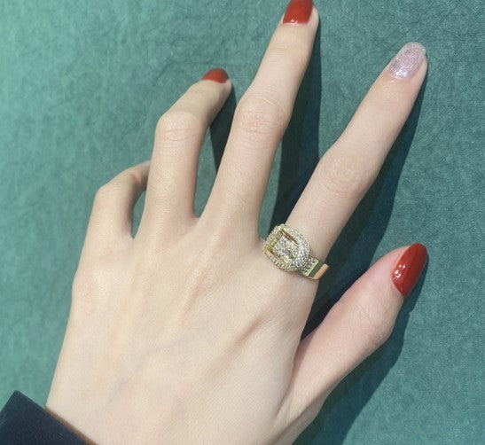 Women's Micro Inlaid Zirconium Simulated Diamond Belt Buckle Ring Alloy Electroplated Fashion Jewelry On Trend
