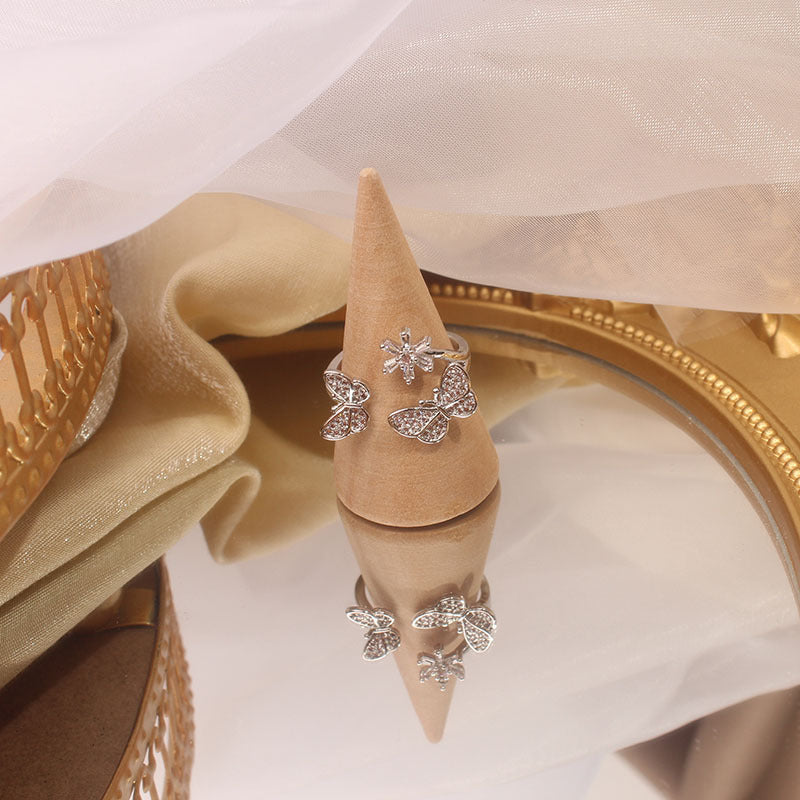 Womens Fashion Butterfly Ring Delicate Alloy Floral Design Electroplated Gift For Travel Souvenir Individually Packed