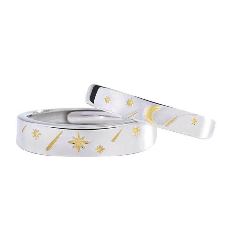 Adjustable Couple Rings For Mens Womens Moon Star Design Copper Electroplated Open Ring Durable Jewelry Add On