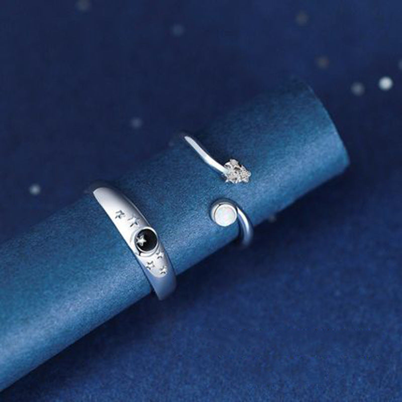 Adjustable Planet Rings For Lovers Copper Matching Moonstone Electroplated Fashion Trend Gel Ring For Moonstone