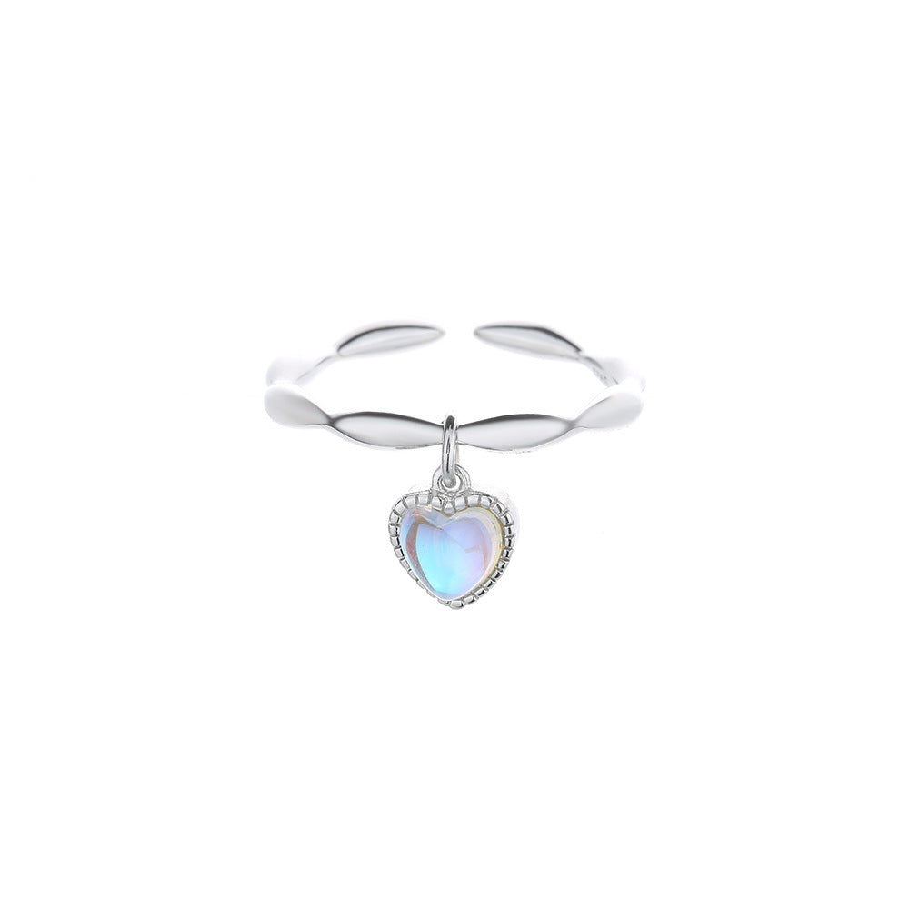 Women's Heart Ring Moonstone Zircon Adjustable Copper Band