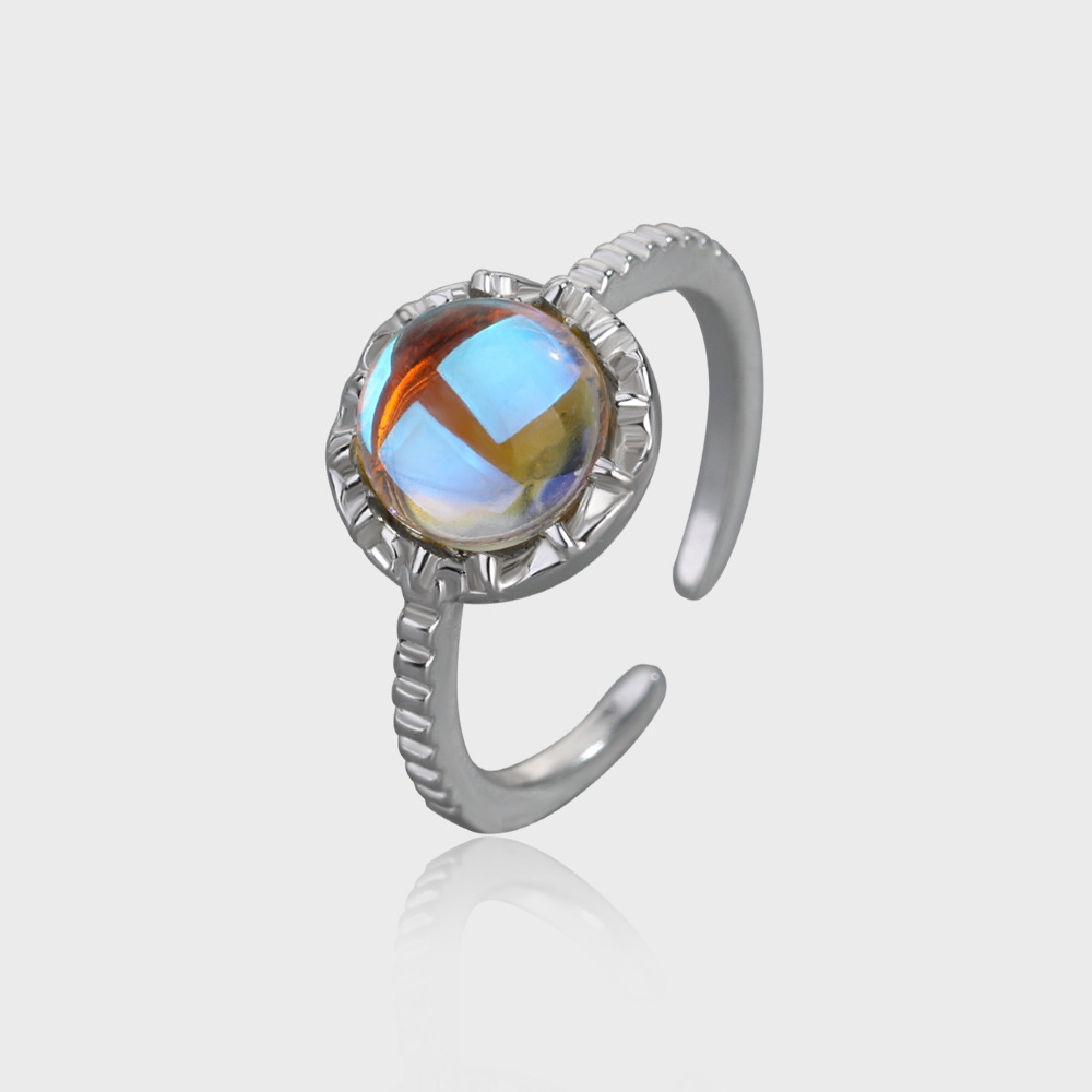Moonstone Adjustable Ring For Women And Men Crown Design Copper Electroplated Jewelry Gift Accessory Style Elan