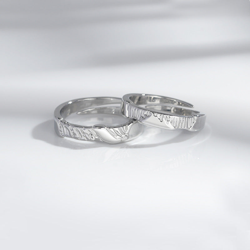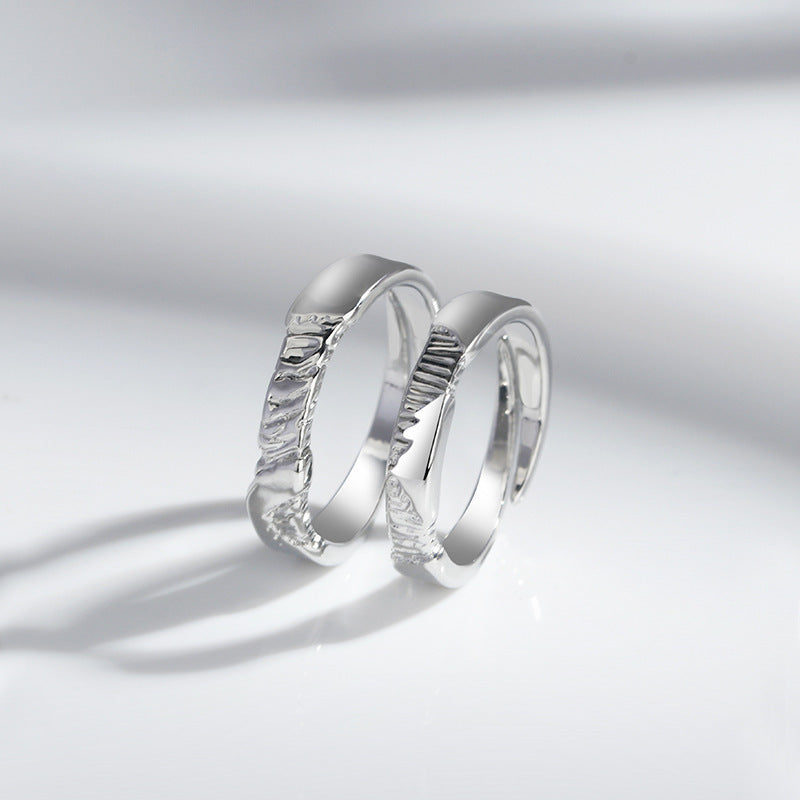 Adjustable Copper Couple Rings Mountain River Geometric Texture Rings For Lovers Matching Set For Couples Gift