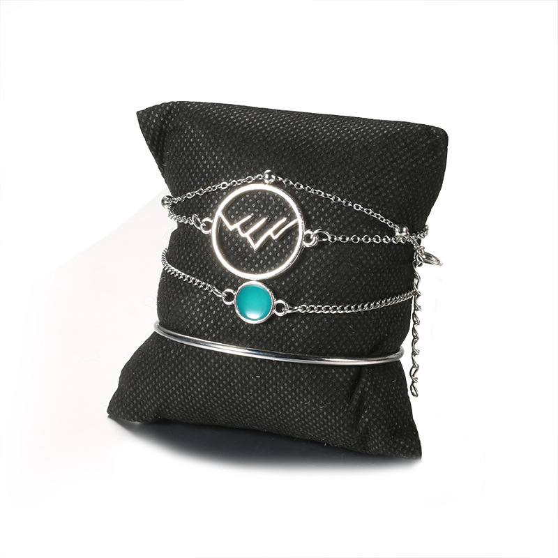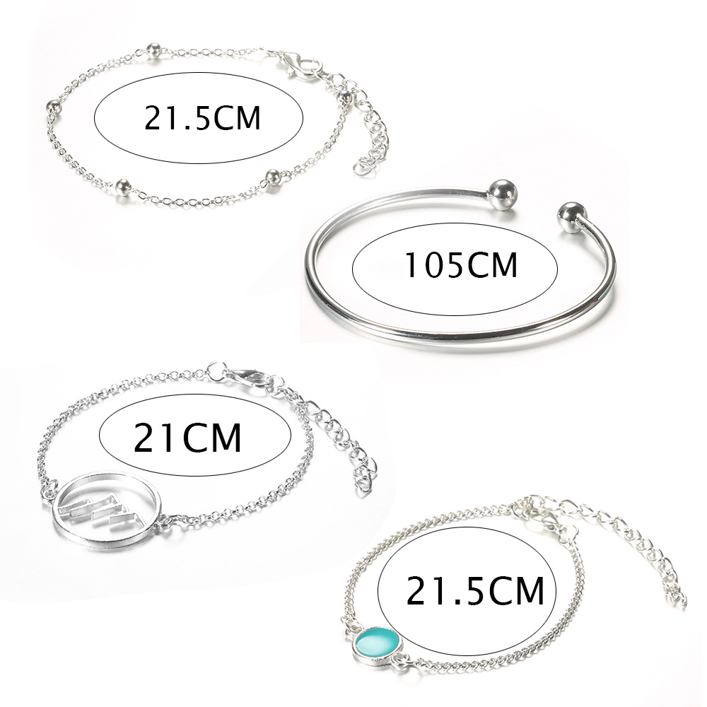 Womens Geometric Beaded Alloy Bracelet Set With Gemstones Inlay Jewelry European American Style Elegant Choice