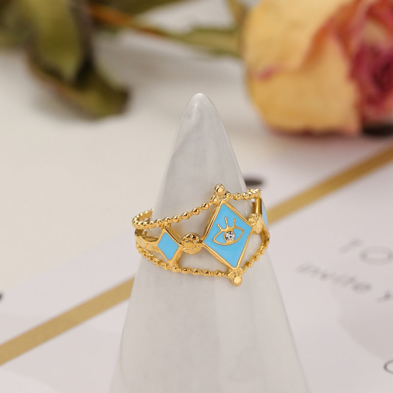Womens Stainless Steel Ring Dripping Oil Prismatic Eye Pattern Adjustable Opening Fashion Jewelry High Quality Durable