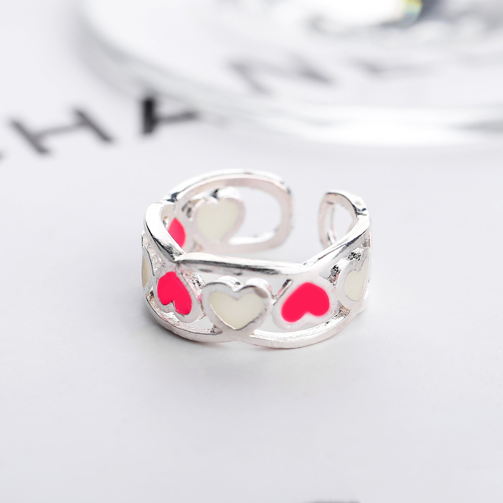 Womens Heart Ring Adjustable Silver Plated Fashion Ring Glowing Heart Design Jewelry For Women And Girls Shine