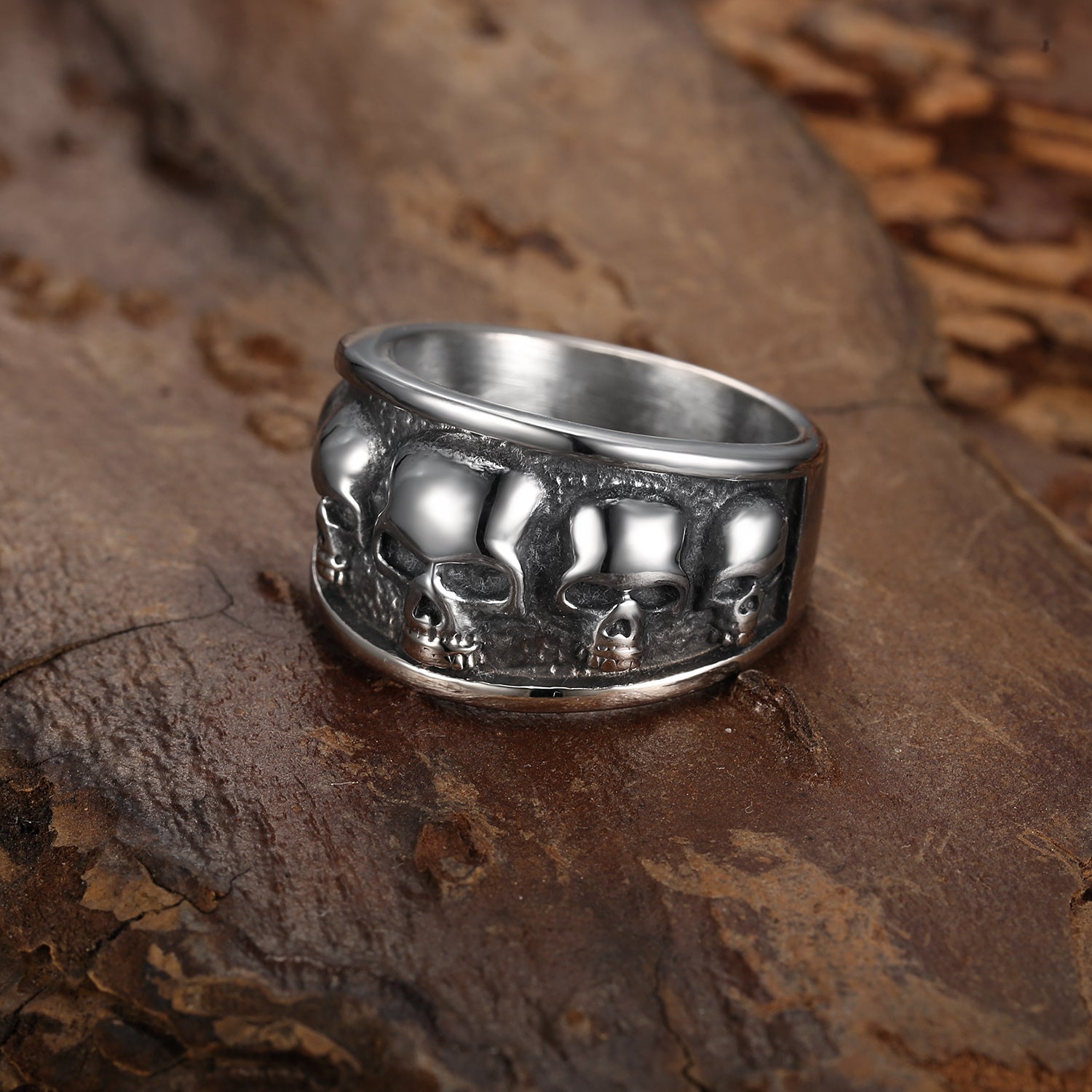 Stainless Steel Skull Ring Unisex Vintage Punk Biker Jewelry Polished Skull Design Statement Ring For Men Size