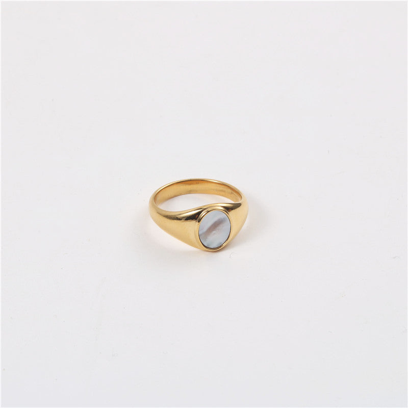 Geometric Natural White Fritillaria Shell Ring Stainless Steel Jewelry Long Lasting Color Women And Girls Ring
