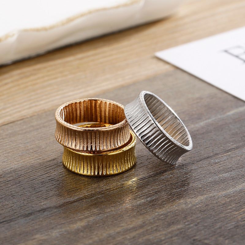 Stainless Steel Ring With Diamond Accent For Women European American Fashion Gold Silver Rose Gold 7mm Style01