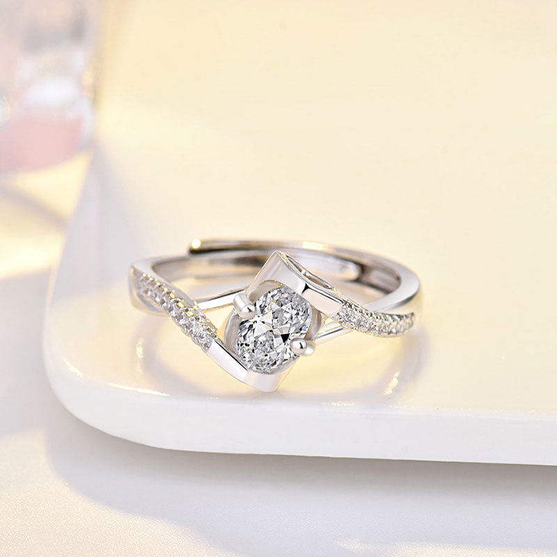 Women Adjustable Copper Gold Plated Ring With Artificial Gemstones Geometric Design Jewelry Elegant Gift For Women