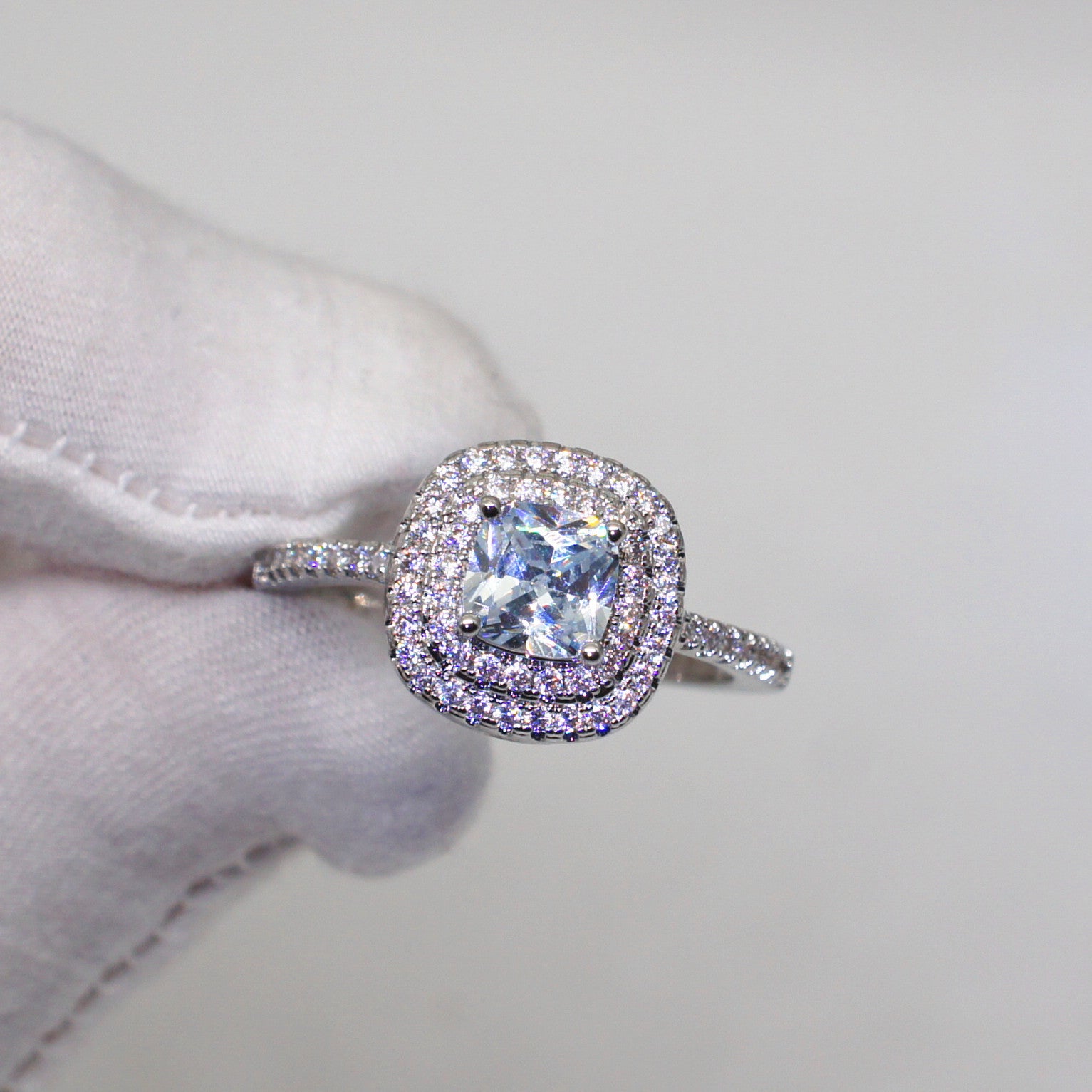Double Layer Tiger Claw Square Zircon Ring Mosaic Topaz Diamonds In White Purple Pink Jewelry Gift For Big Day