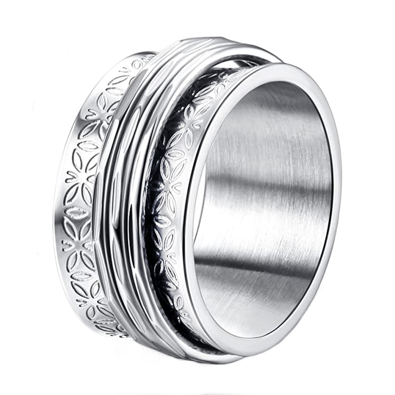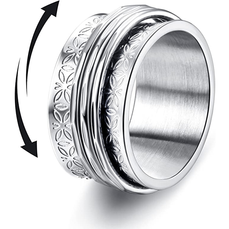 Butterfly Decompression Rotatable Ring Titanium Steel Unisex Wide Band Elegant Silver Jewelry Ring Silver Tone