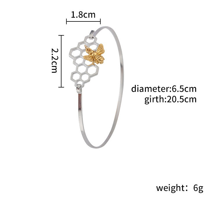 Womens Honeycomb Bracelet Alloy Jewelry With Bee Insect Design Gold Silver Tone Simple Elegant Gift For Her XL