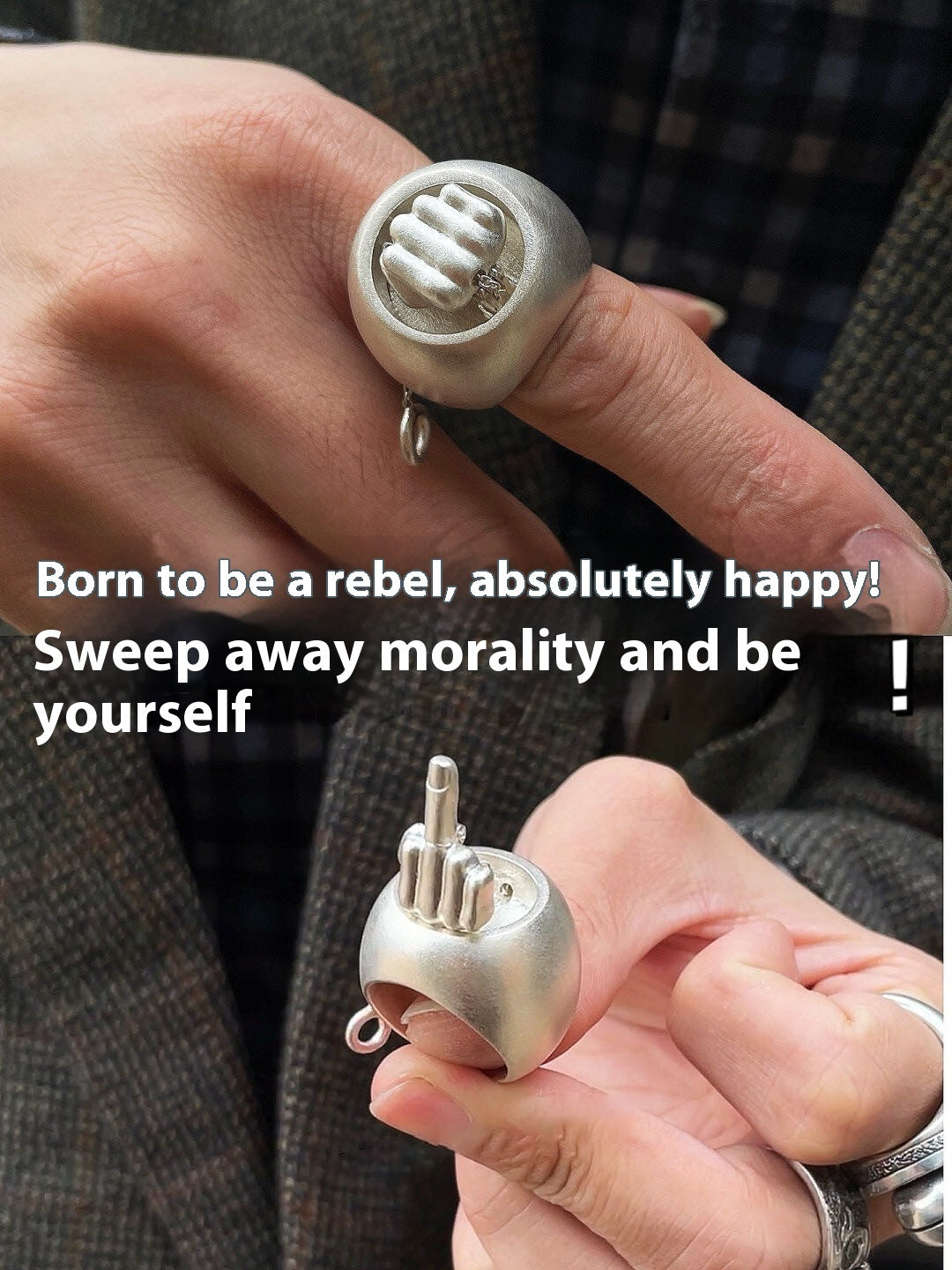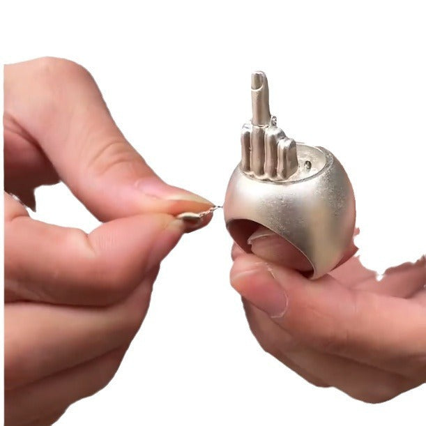 New Funny Creative Vertical Middle Finger Ring For Women Alloy Geometry Fashion Jewelry Type Ring Inlay Female