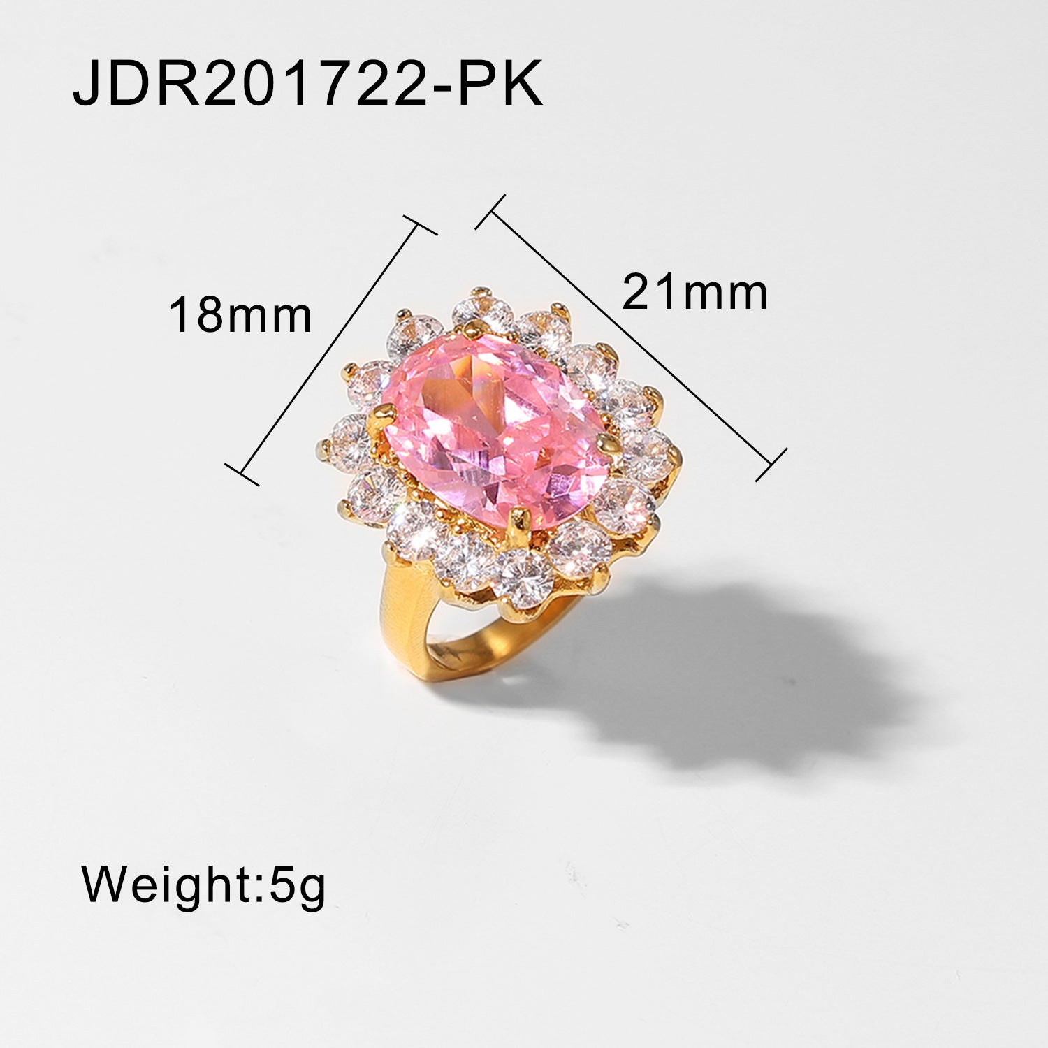 Womens Flower Ring Stainless Steel Zircon Inlay Oval Gem