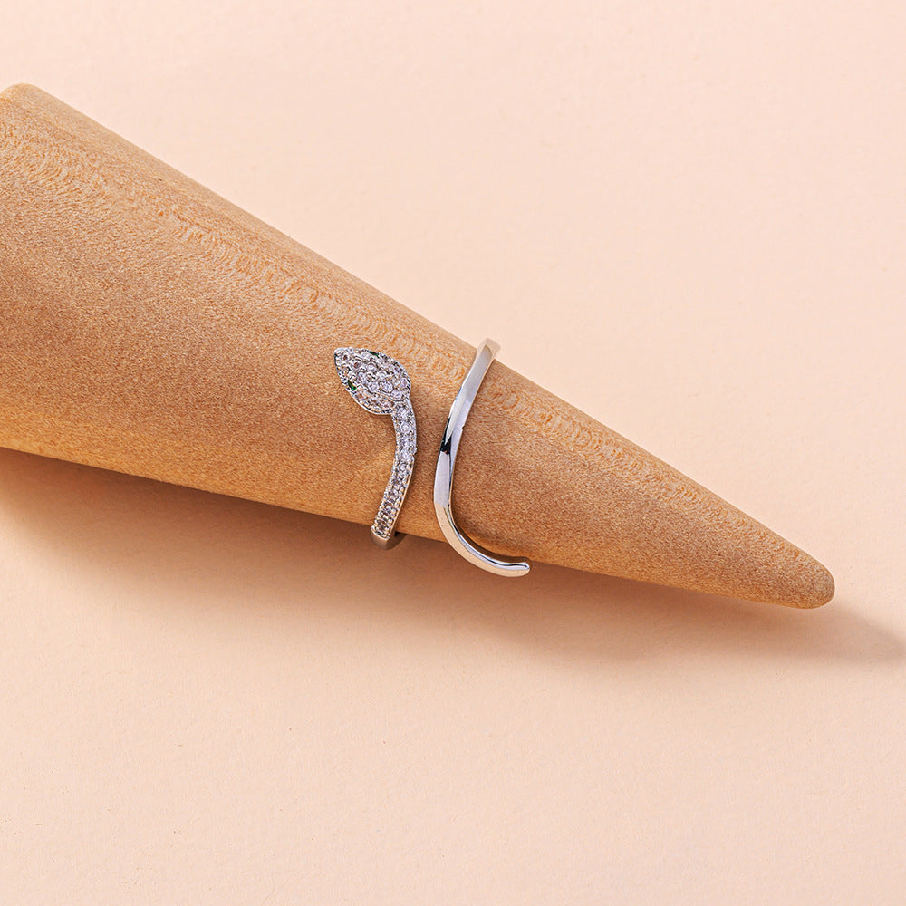 Womens Adjustable Snake Ring With Green Zircon Eyes Copper Electroplated Elegant Fashion Jewelry Statement Animal Ring