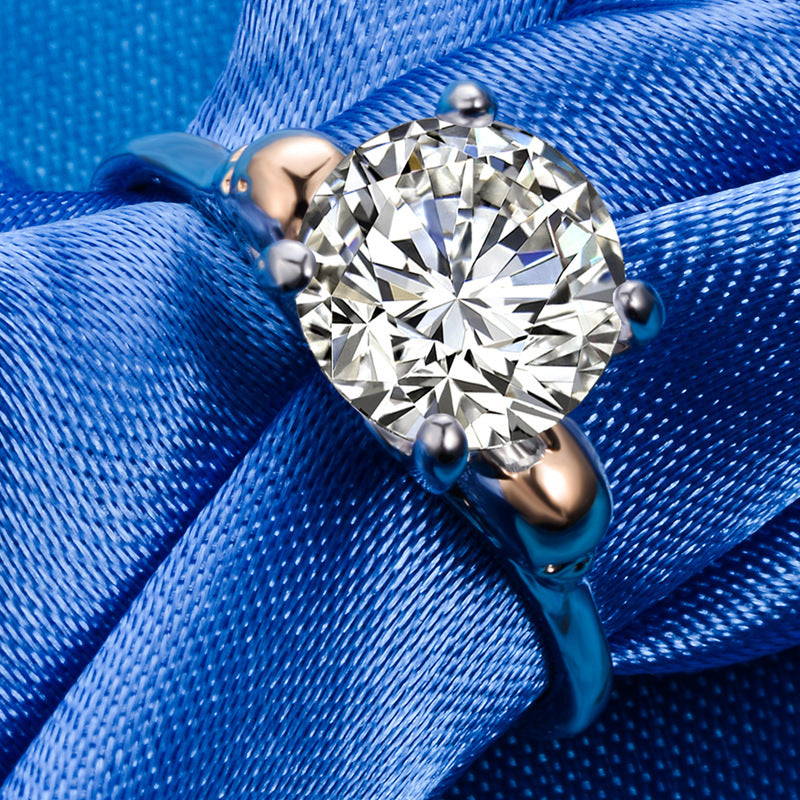 Rose Gold Two Tone Ring Exaggerated Big Diamond Creative Jewelry For Women Copper Gold Plated Artificial Gems Shine
