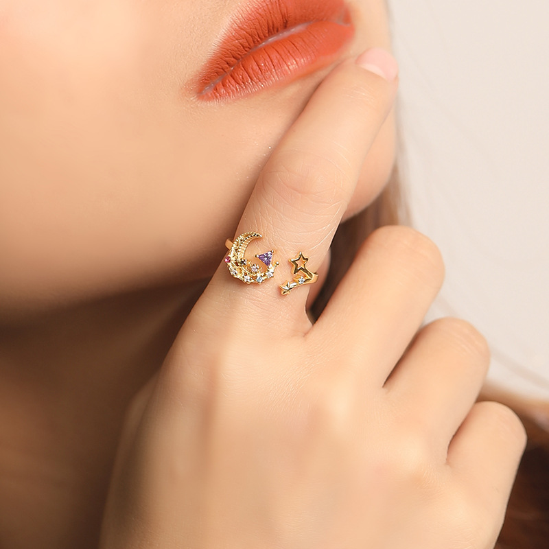 Womens Sterling Silver Crescent Moon Ring Adjustable Open Design Elegant Celestial Jewelry Bright Gift For Her