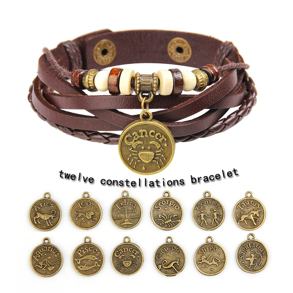 Unisex Astrological Sign Bracelet With Coin Charm And Layered Leather Bangle For Festival And Daily Wear Gift