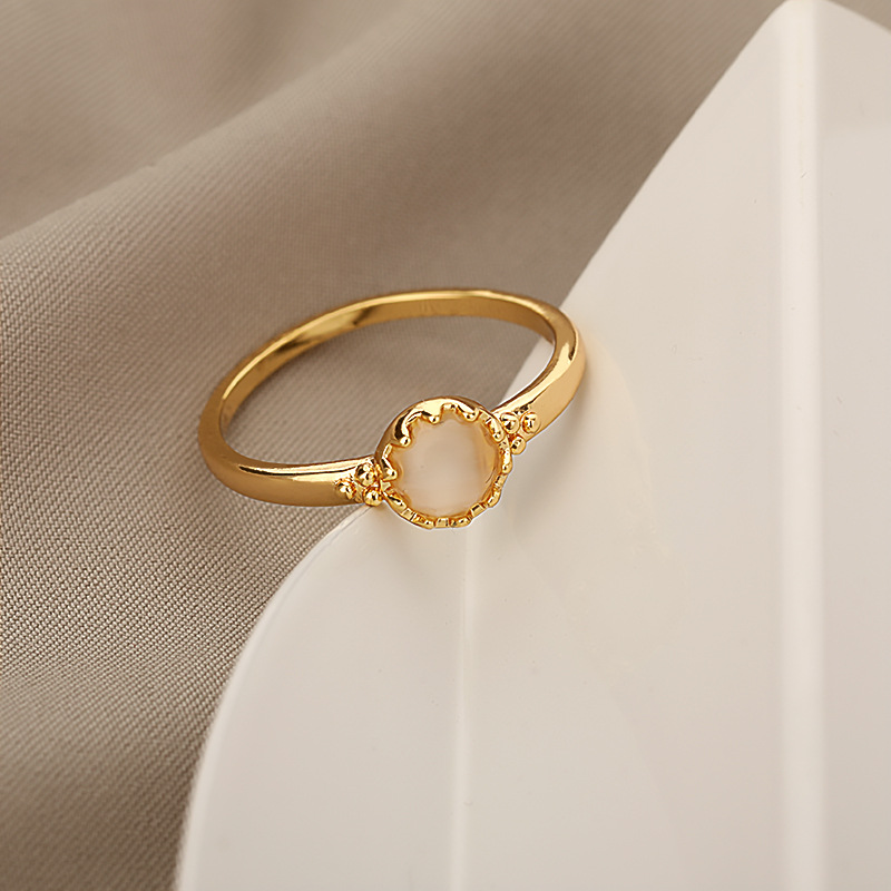 Circle Geometric Opal Ring Brass Gold Size 7 Women Sun Shape Fashion Jewelry For Everyday Wear Chic Trendy Everyday Glam