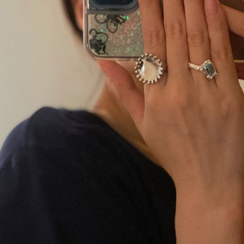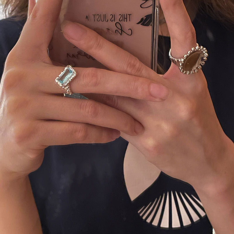 Ice Blue Lava Texture Ring Copper Silver Plated Fashion Jewelry For Women Elegant Everyday Accessory Chic Look