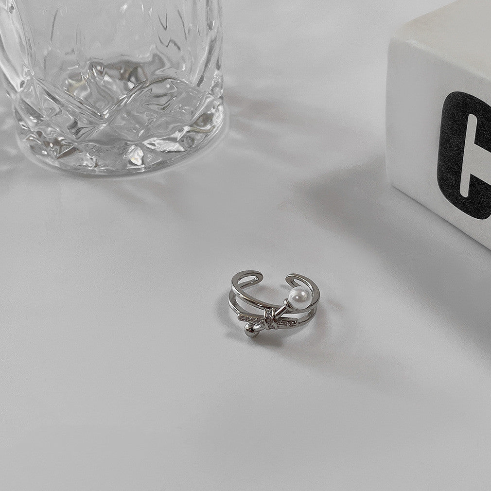 Copper Adjustable Open Ring With Geometric Design Pearl Elements Electroplated Fashion Jewelry For Women Shines