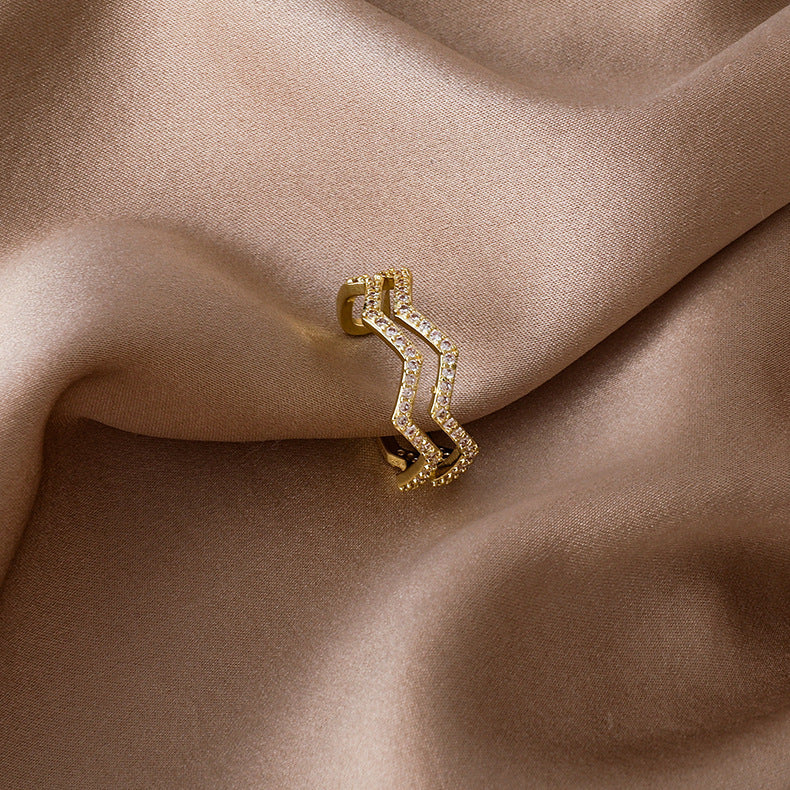 Niche Double Layer Wave Index Finger Ring Copper Korea Style Women Inlaid Gems Semi Precious Stones Aura Charm