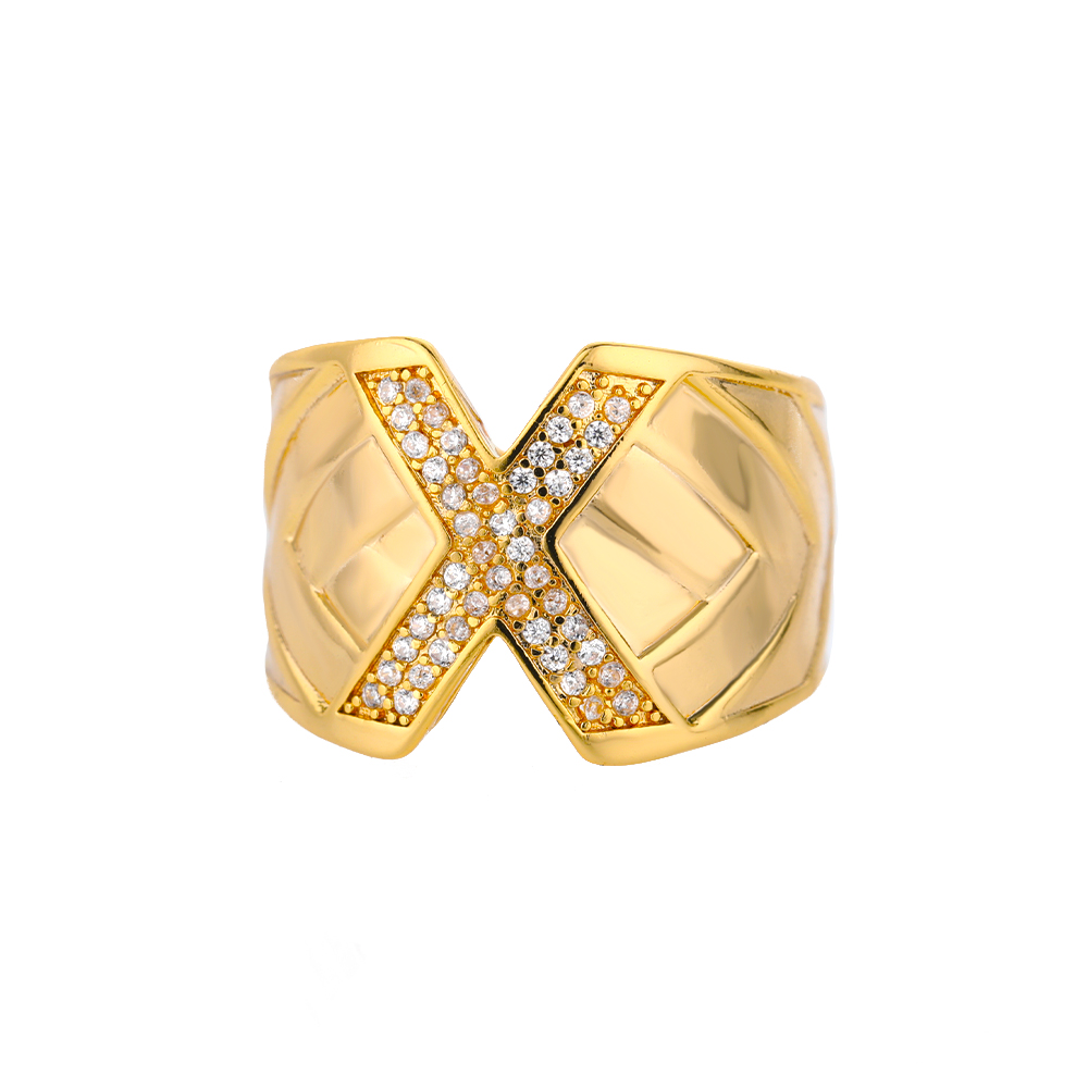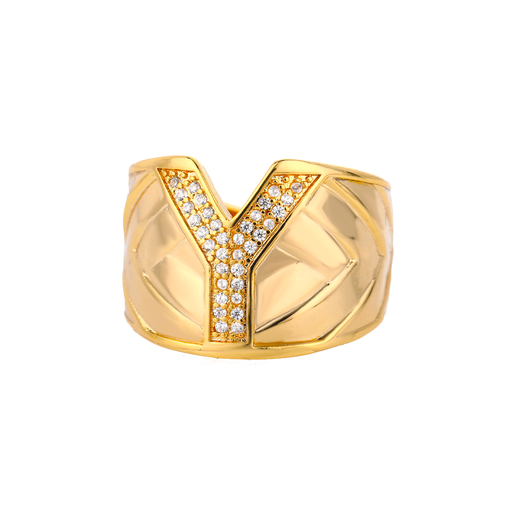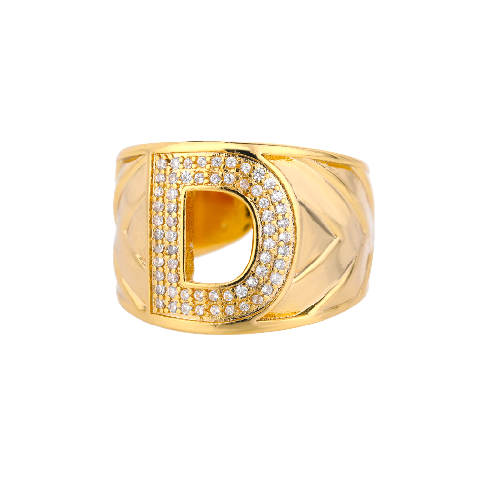 Copper Zircon Letter Ring Adjustable For Women Jewelry